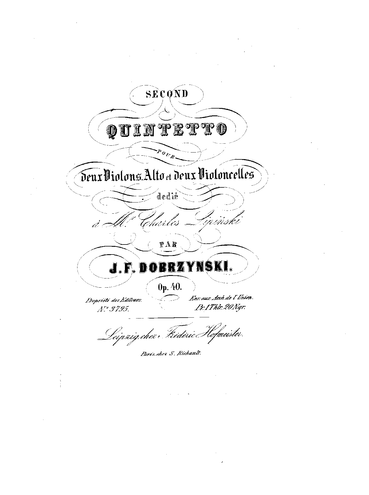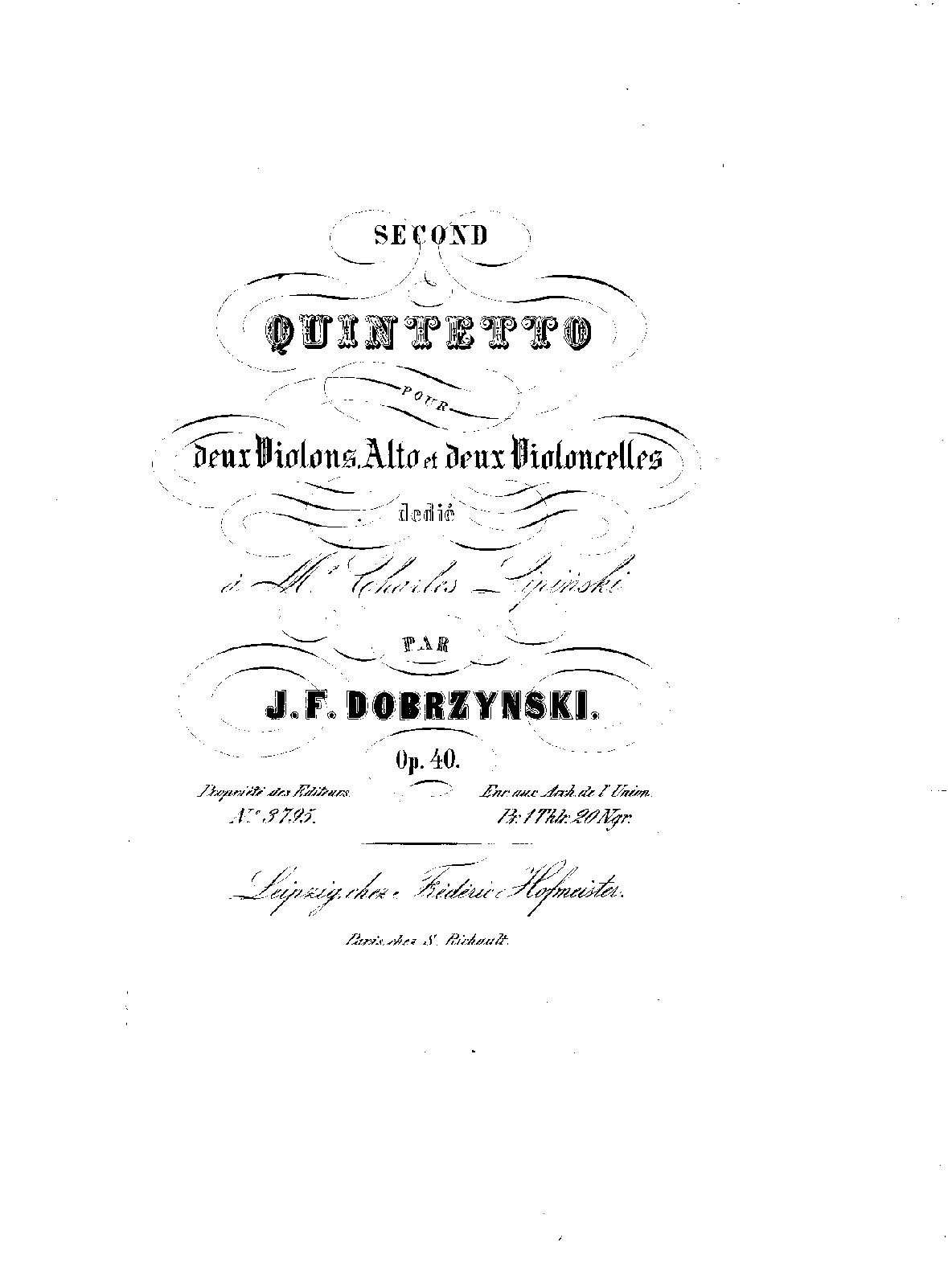 | Genre Categories | Quintets; For 2 violins, viola, 2 cellos; Scores featuring the violin; |