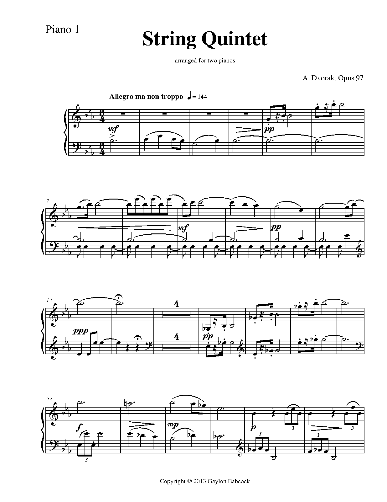 | Name Aliases | Quintette à cordes n° 3; Quintette à cordes en mi bémol majeur, op. 97; Quintette à cordes en mi bémol majeur op 97; Quintette a cordes n° 3 de Dvorak; Quintette a cordes no 3 de Dvorak; String Quintet in E-flat Major, Op. 97 |