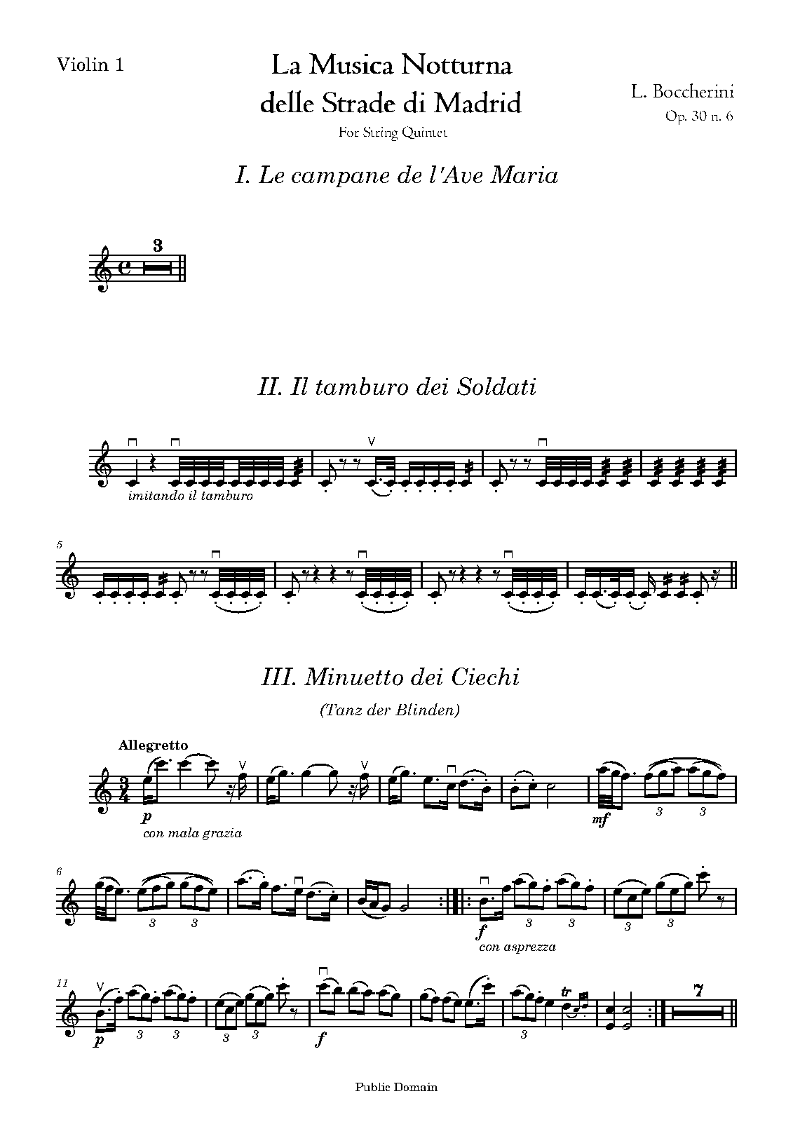 - Quintet No.60 in C major, G.324 "La Musica Notturna delle strade di Madrid"