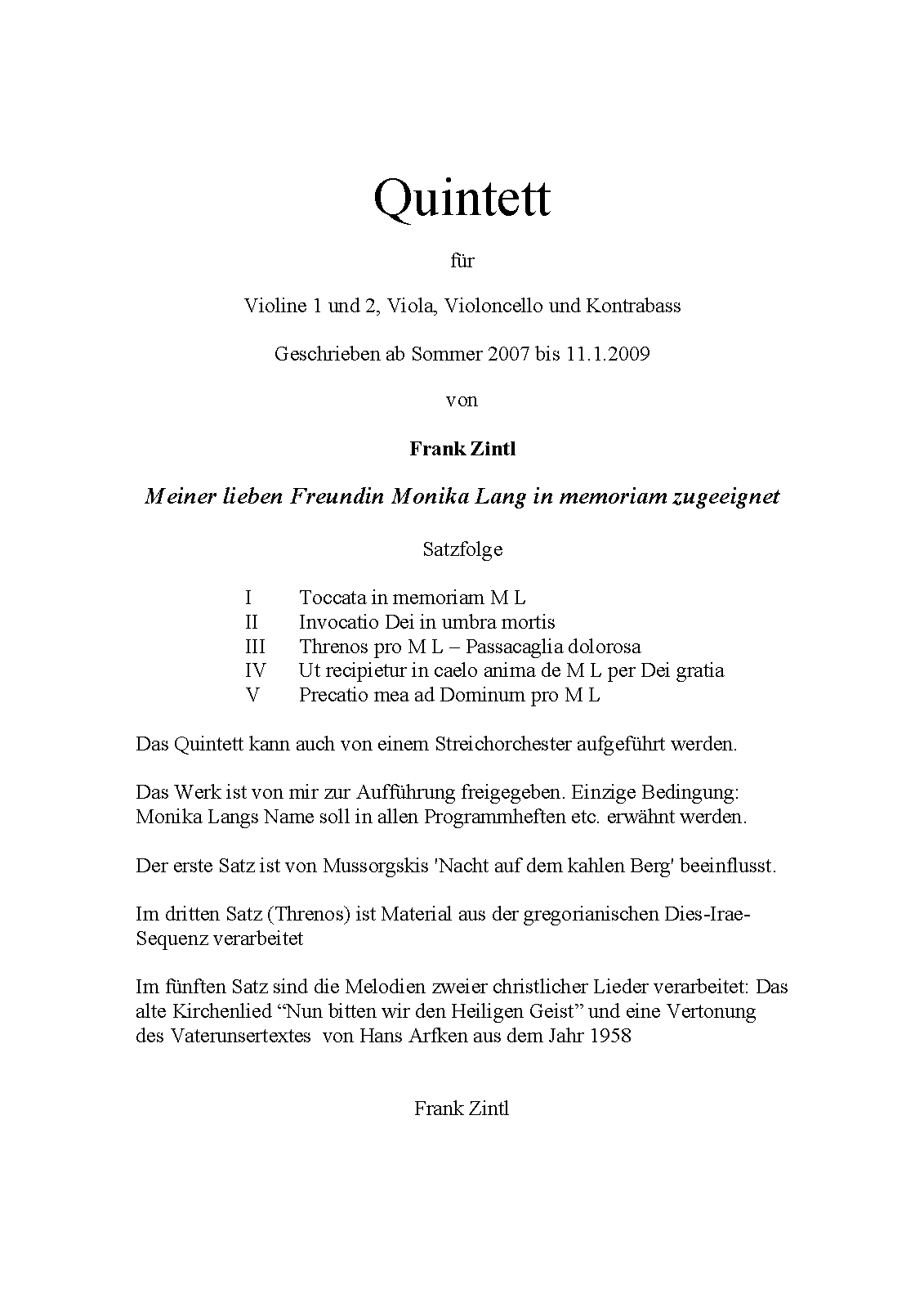 The quintet is on a symbolic level dealing with my personal thoughts about live, death and eternity. Later after the message about Moni´s destiny I understood the reason why - and for whom.