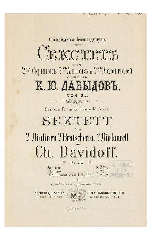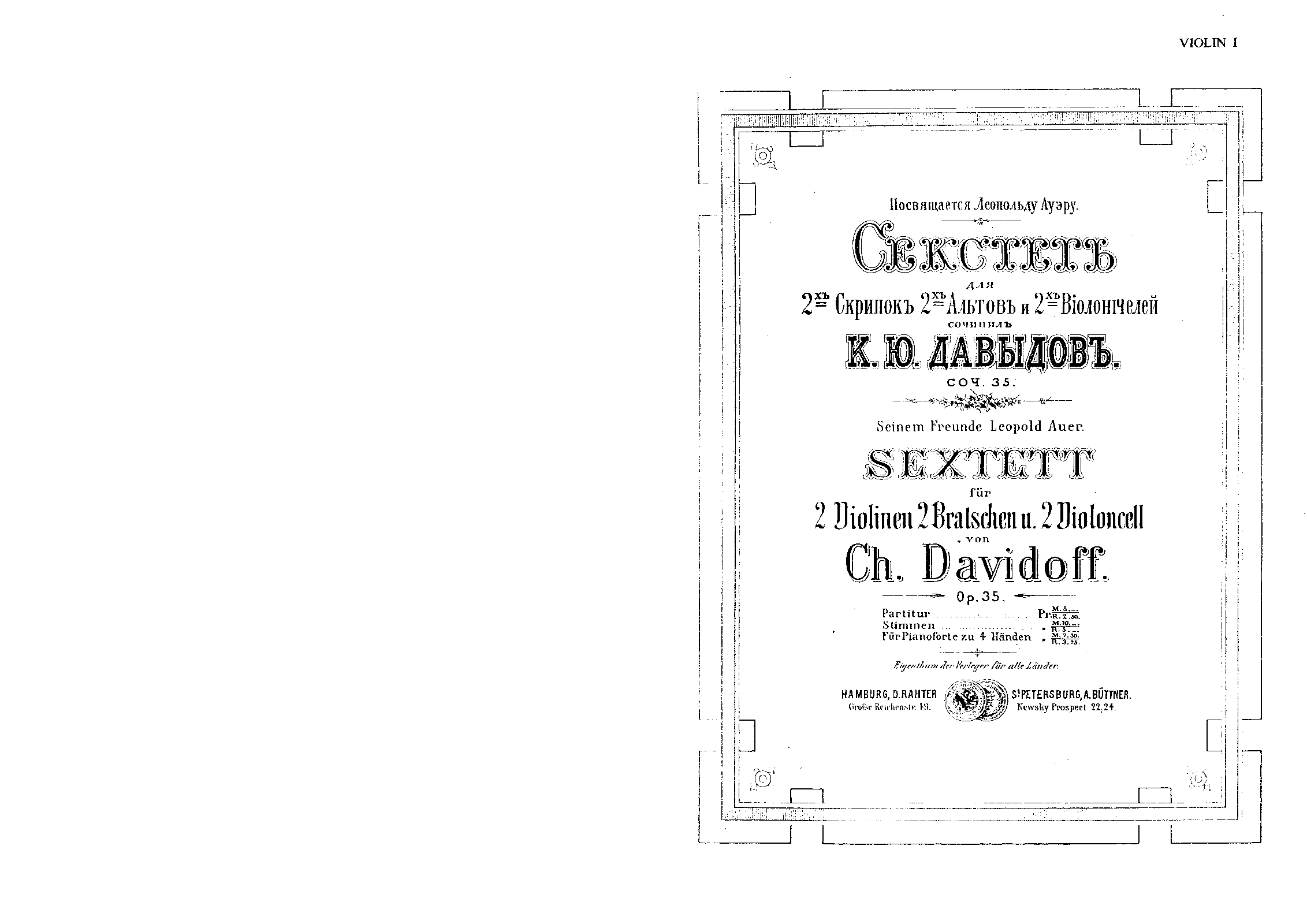 | Genre Categories | Sextets; For 2 violins, 2 violas, 2 cellos; Scores featuring the violin; |