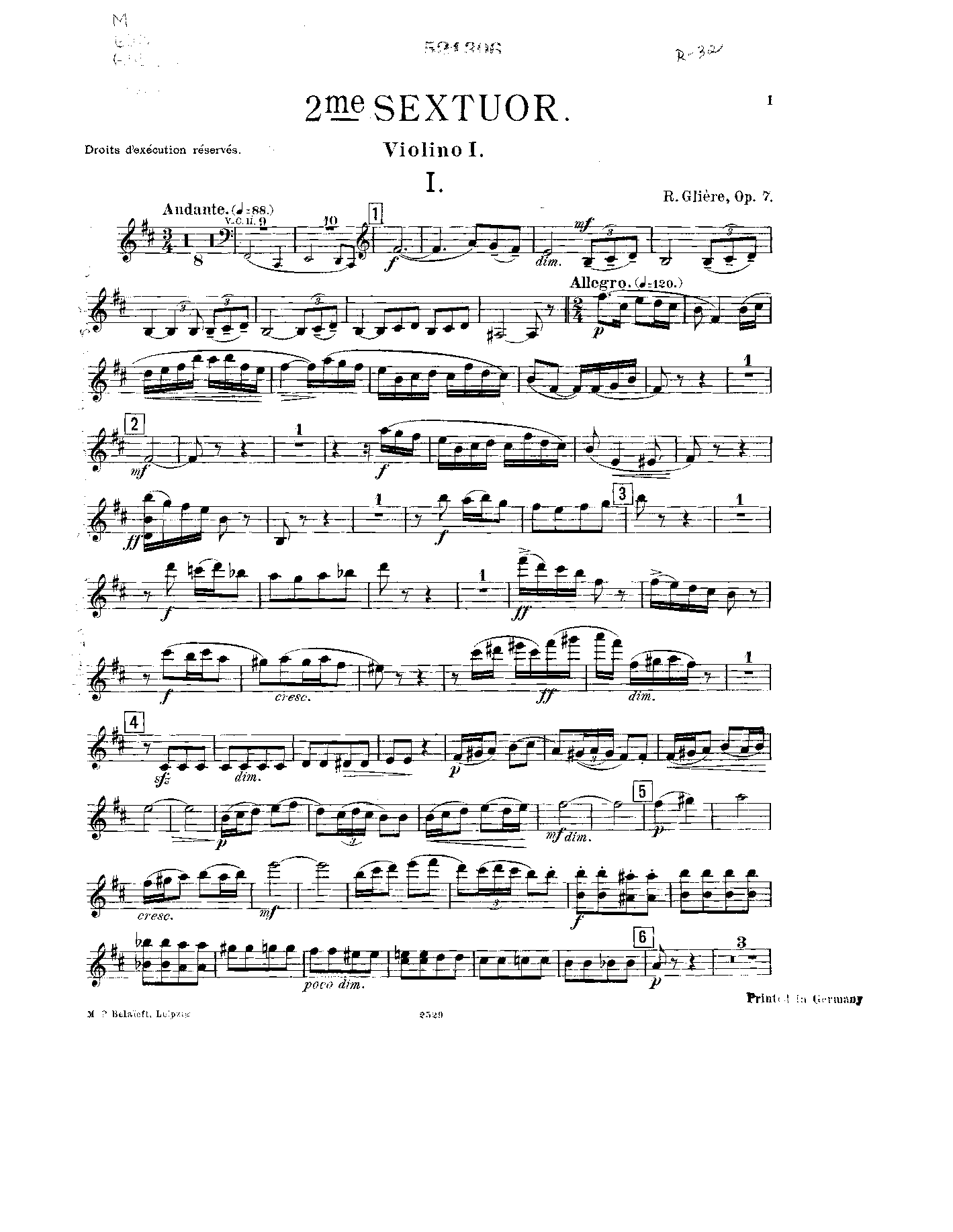 | Genre Categories | Sextets; For 2 violins, 2 violas, 2 cellos; Scores featuring the violin; |