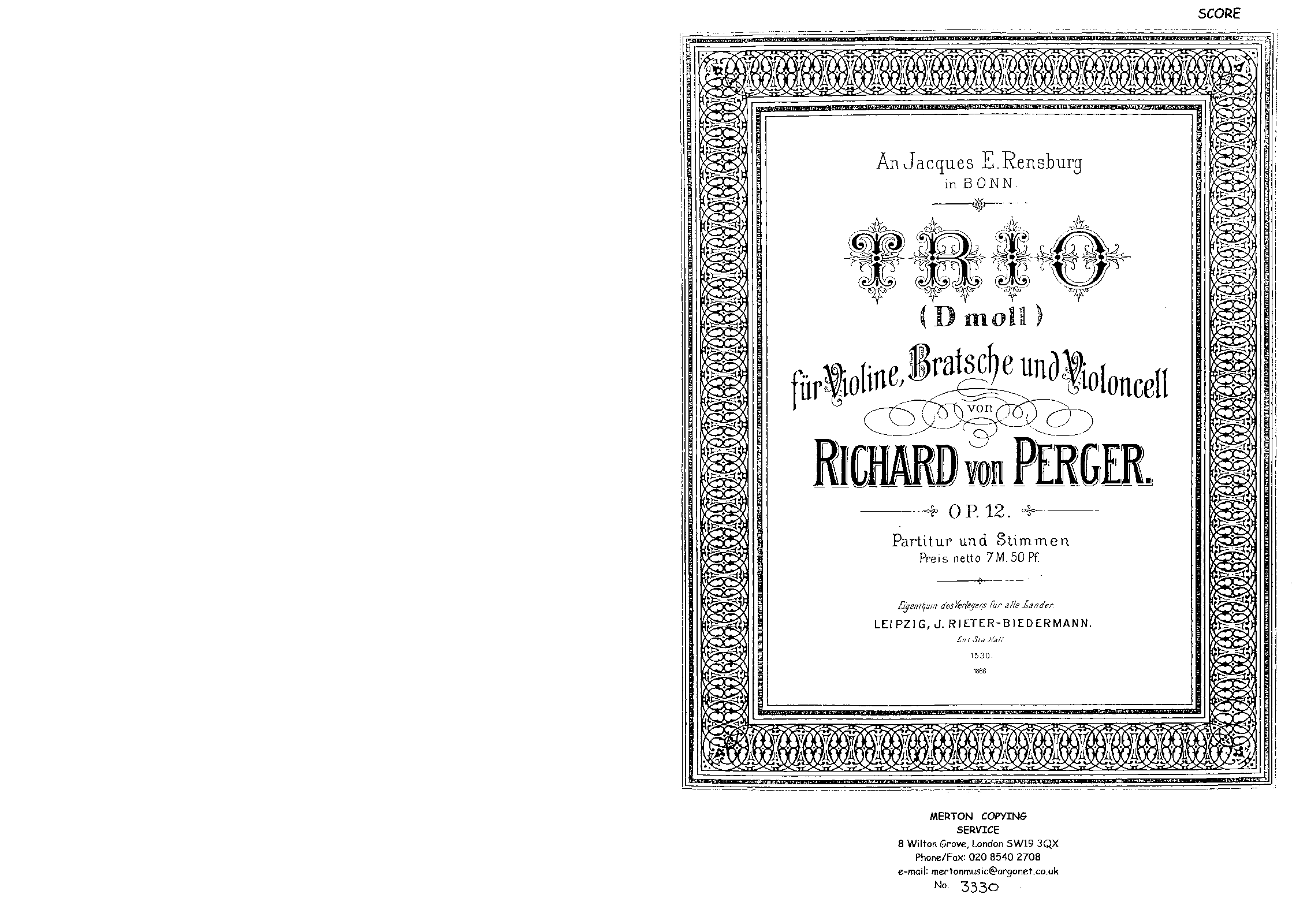 | Genre Categories | Trios; For violin, viola, cello; Scores featuring the violin; |