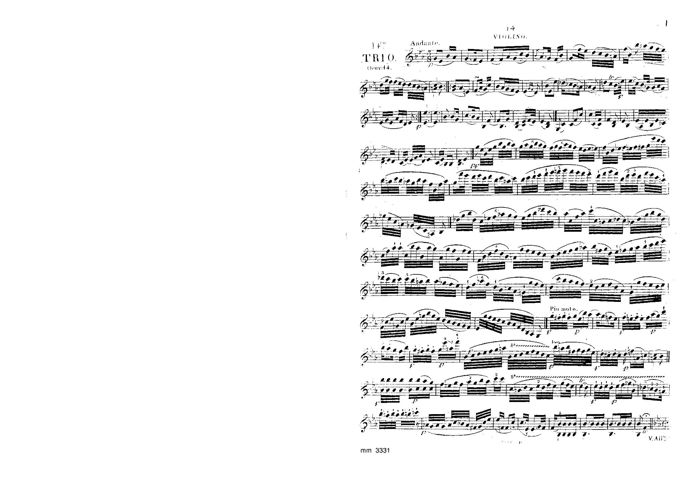 1815-ish publication attested to by appearance of the trio in a 1815 issue of Journal für chemie und physik, Volume 15 (page 13), with Peters given as the publisher. Opening Andante might be a separate movement given its proportions. Also published by Breitkopf ca.1816 (and reviewed briefly on the last page of issue 38, September? 1816 of AMZ.) -Schissel
