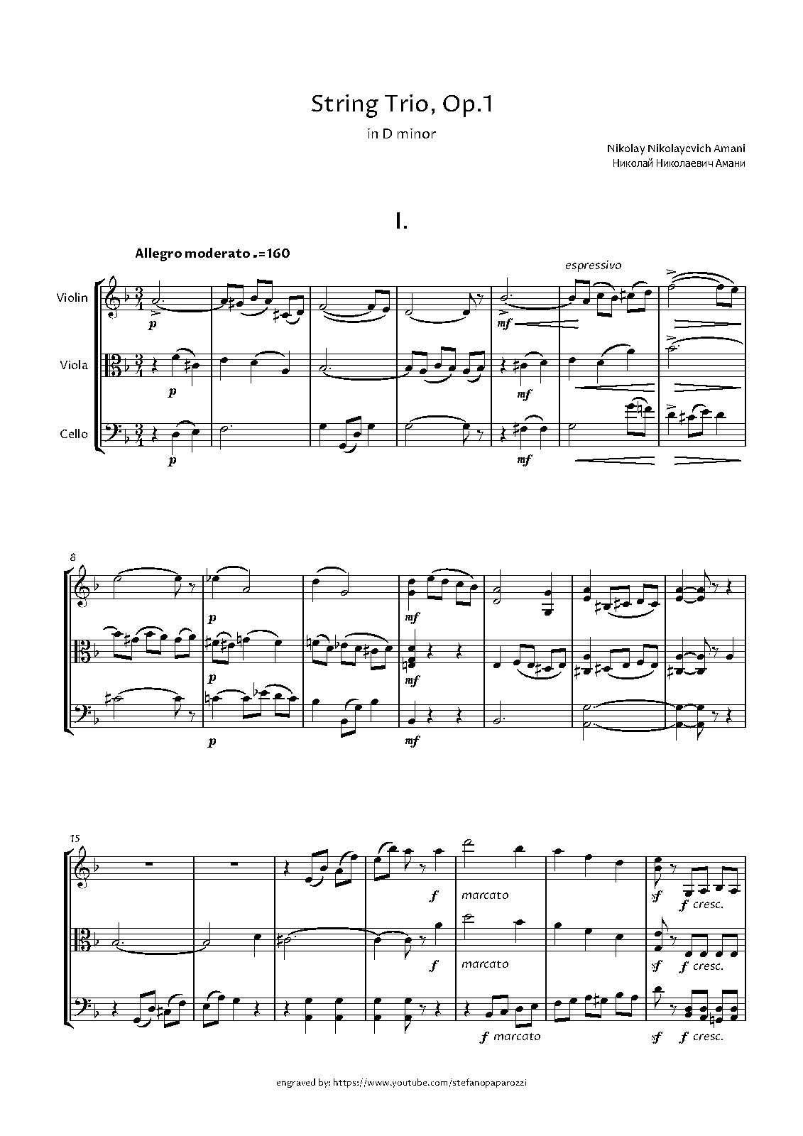 | Genre Categories | Trios; For violin, viola, cello; Scores featuring the violin; |