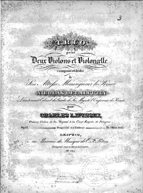 | Dedication | Prince Nicolas de Galitzin (1794-1866) |