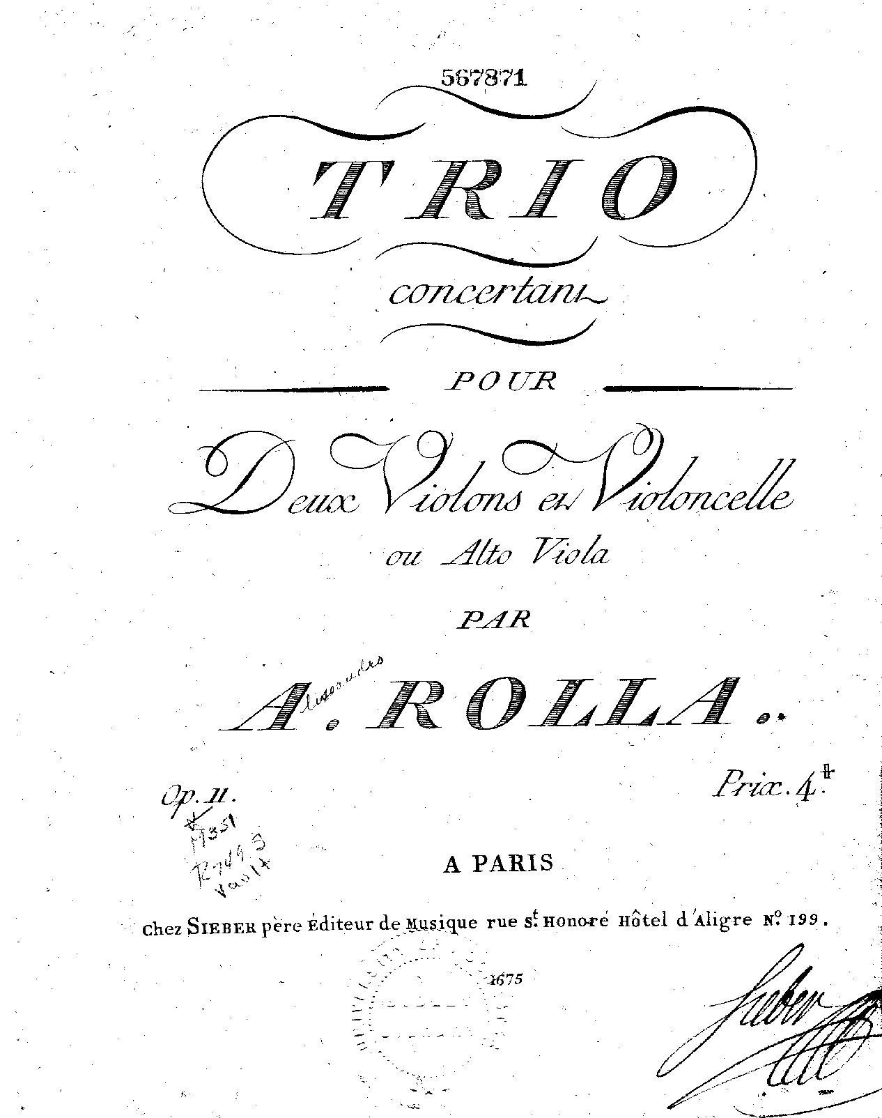| Alternative. Title | Trio concertant pour deux violons et violoncelle ou alto viola |