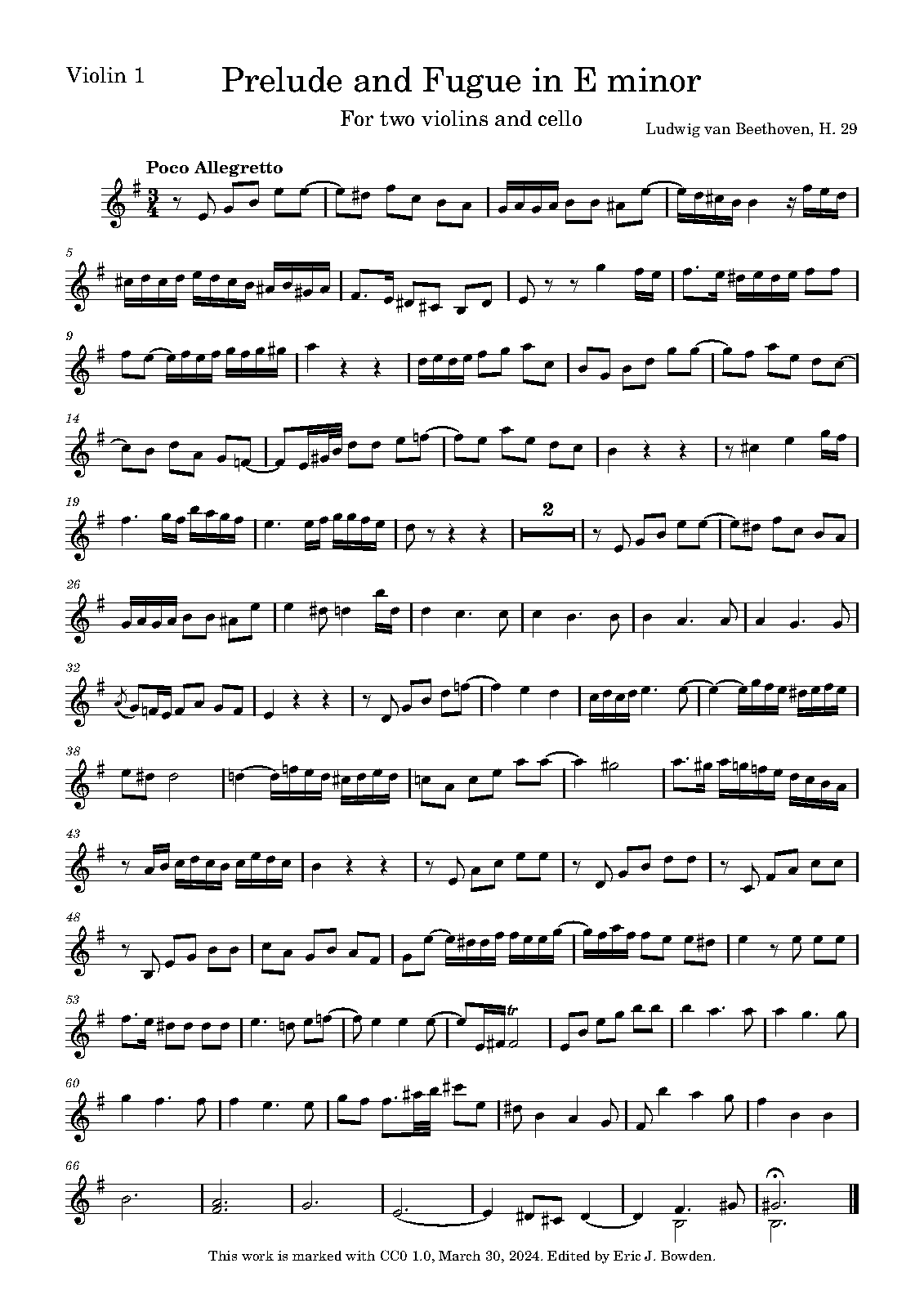Alternative. Title Fugue in E minor for string trio ; Prelude & Fugue for Violins & Cello in E minor