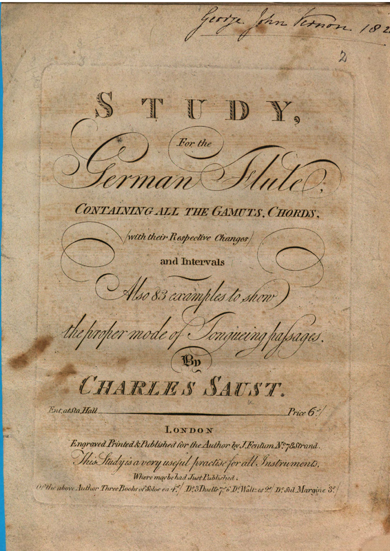 | Alternative. Title | Study, for the German Flute, containing all the Gamuts, Chords, (with their respective changes) and Intervals Also 83 examples to show the proper mode of Tongueing passages ... THis Study is a very useful practise for all Instruments |