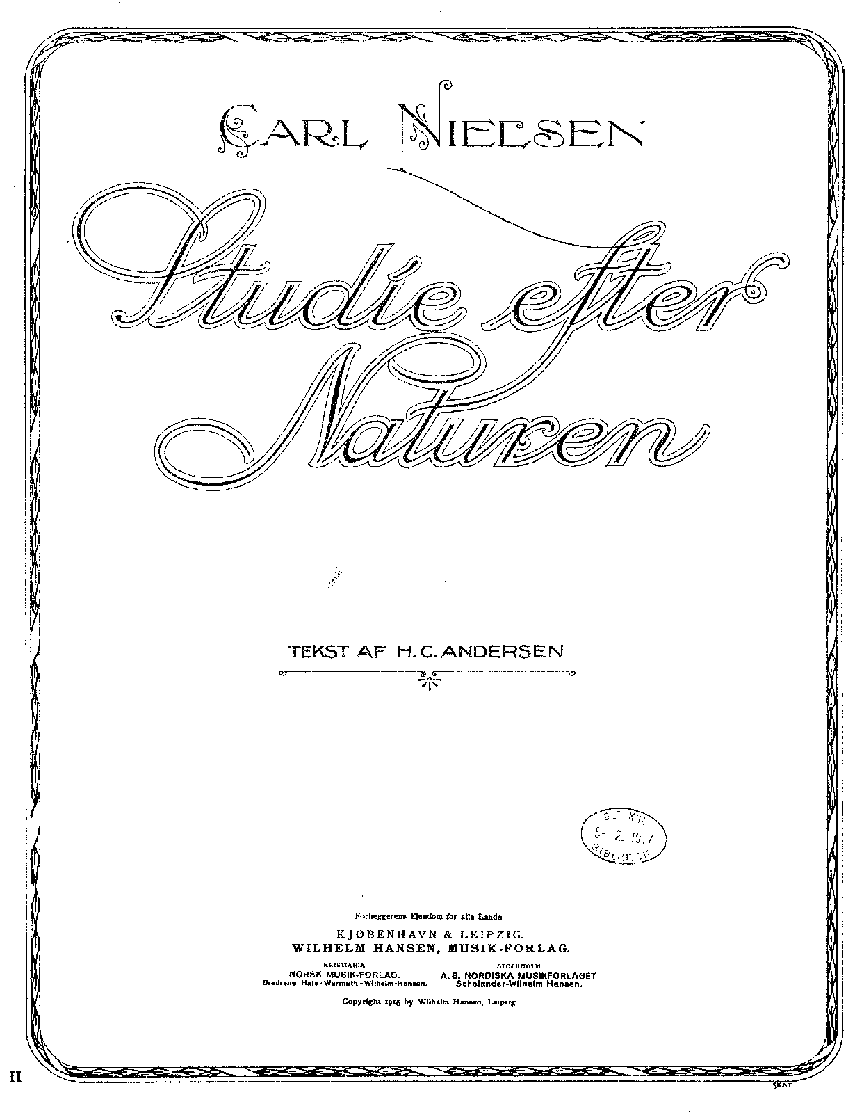 Copenhagen: Wilhelm Hansen, 1916. Plate 16595.