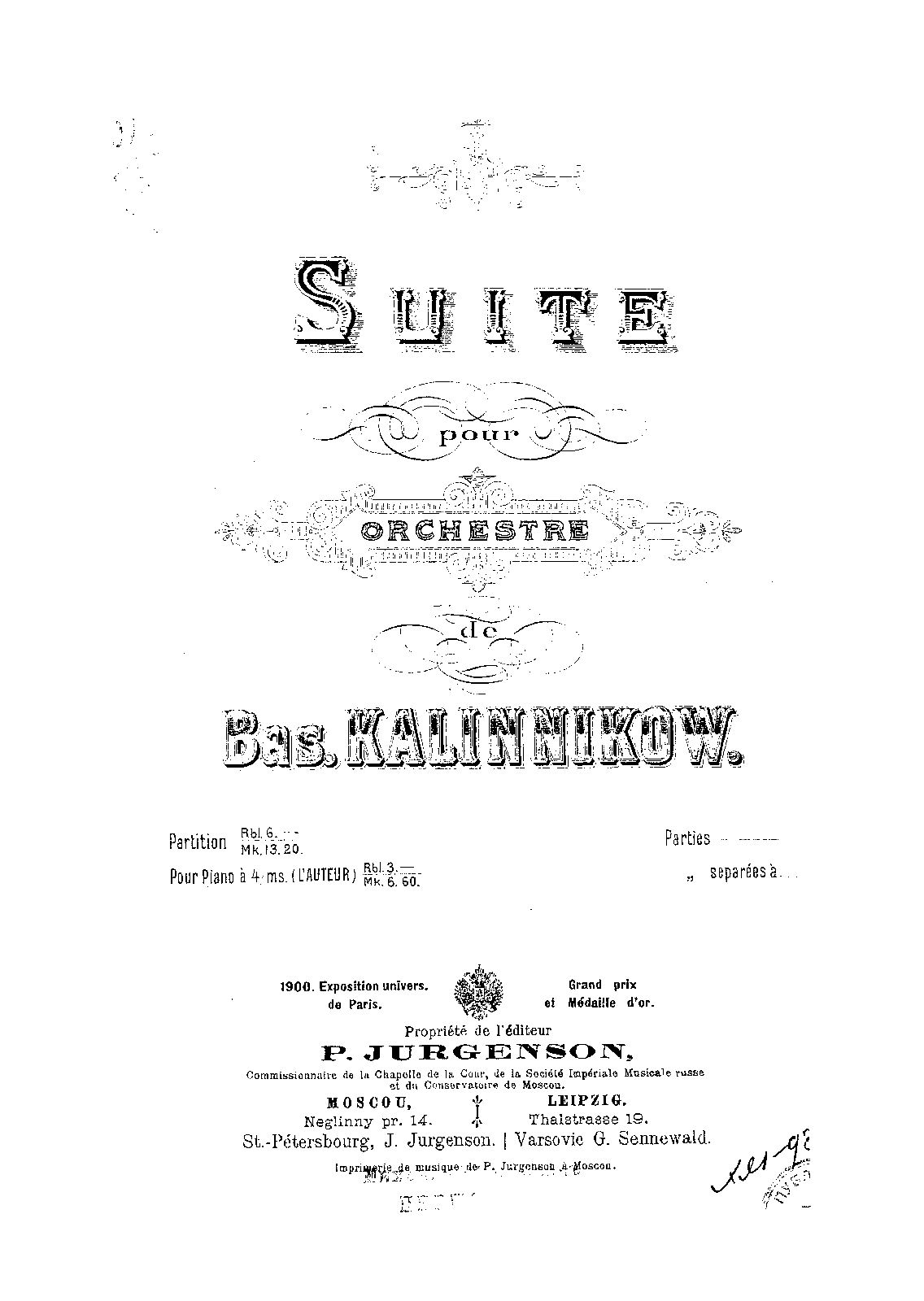Publisher. Info. Moscow: P. Jurgenson, n.d.[1902]. Plate 26094.