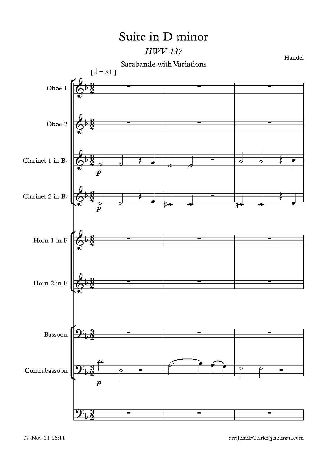For 2 Oboes, 2 Clarinets, Bassoon, Contrabassoon and 2 Horns (Clarke)