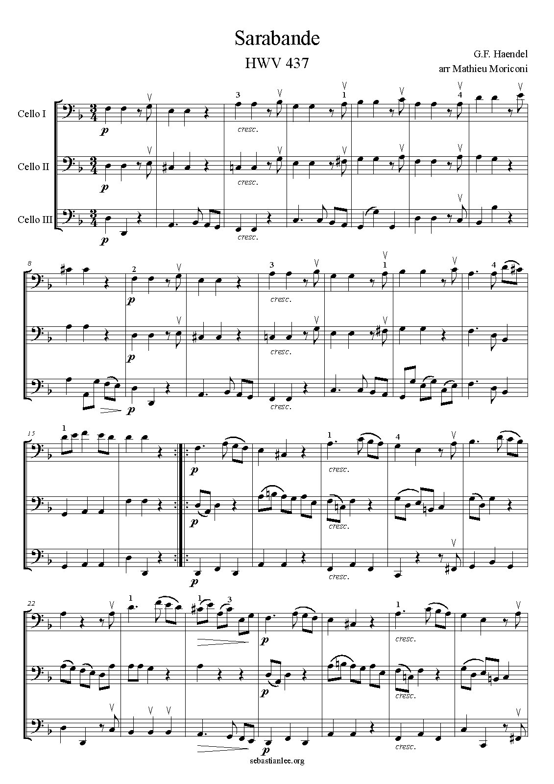 Misc. Notes Discover the Compilation of 8 Haendel’s Sarabandes for 3 cellos and more scores and arrangements at https://sebastianlee.org/boutique/