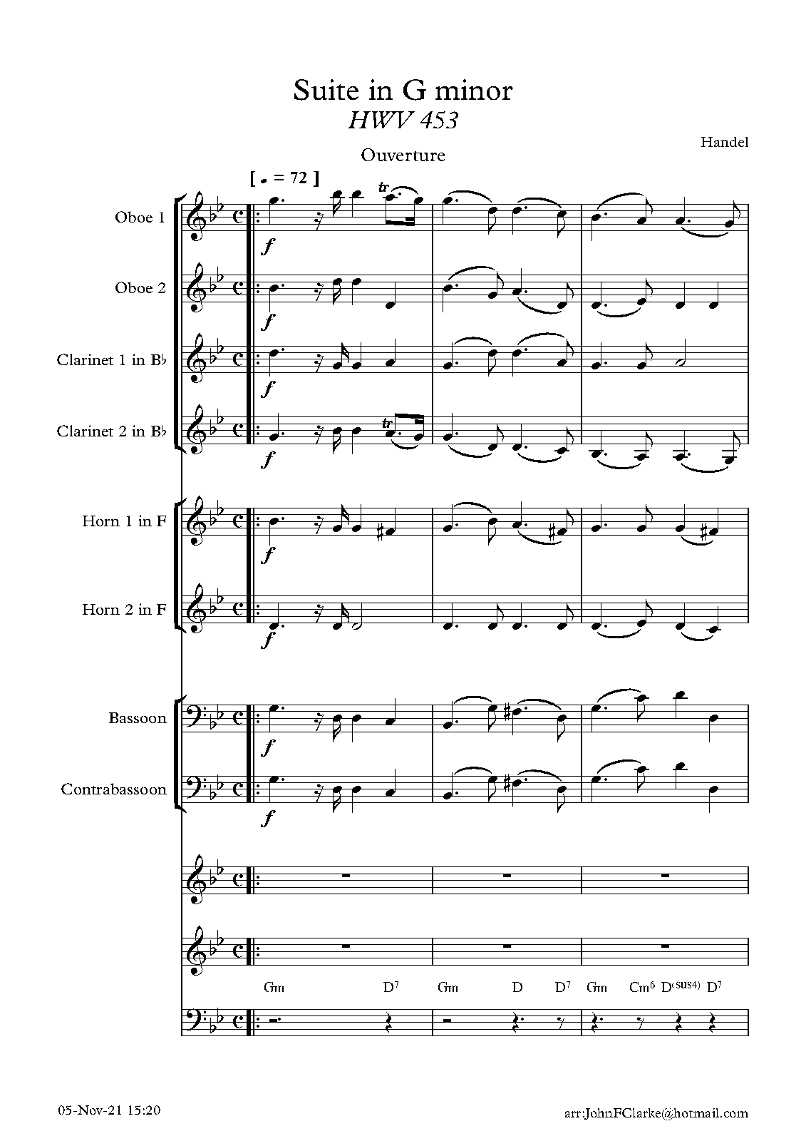 For 2 Oboes, 2 Clarinets, Bassoon, Contrabassoon and 2 Horns (Clarke)