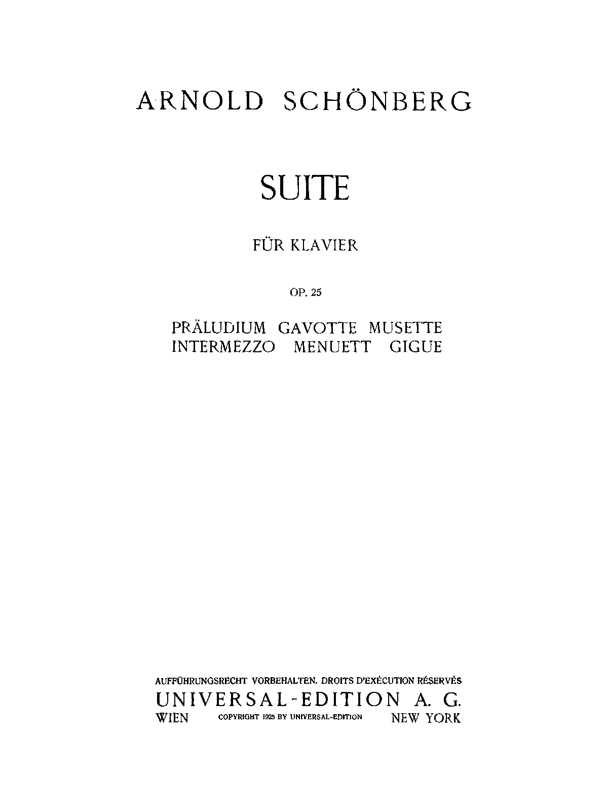 | Name Aliases | suite de Schönberg; Suite opus 25; Suite for Piano, Op. 25 |