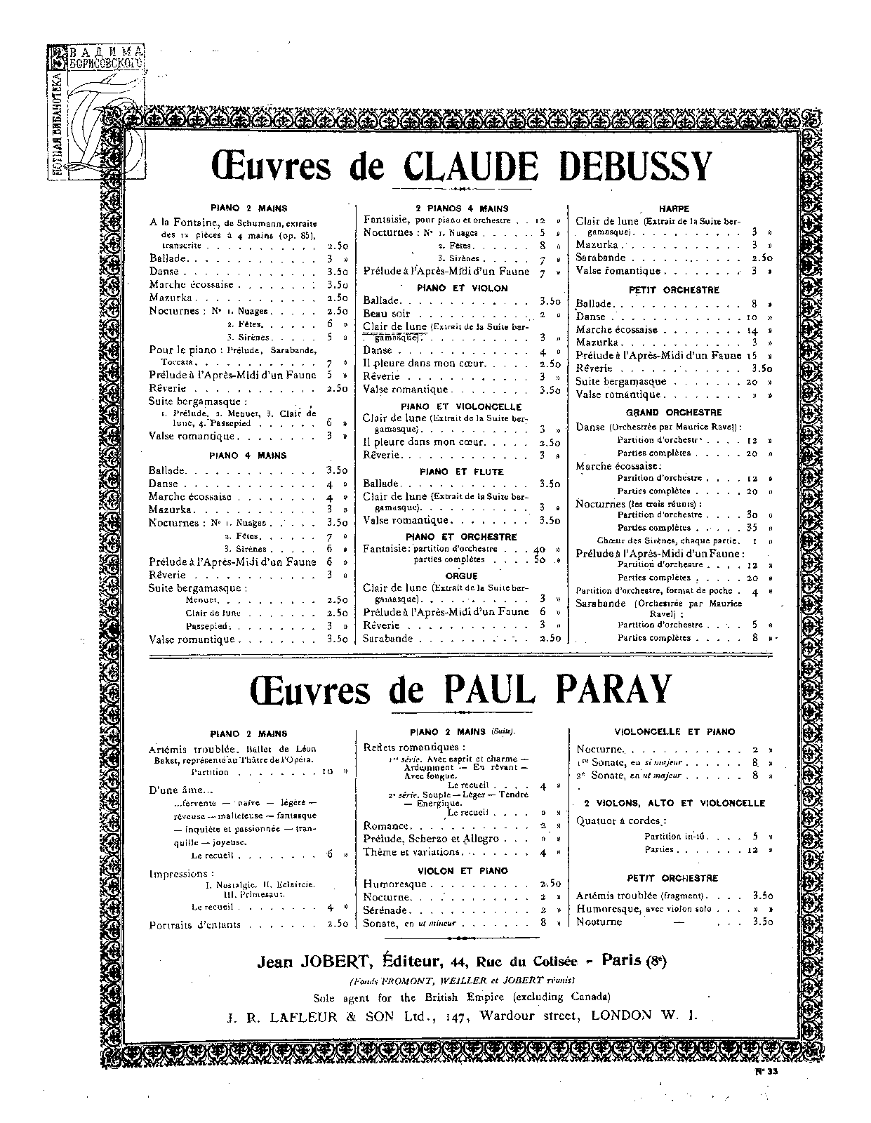 | First Publication. | 1905 (June) – Paris: E. Fromont, Plate E. 1404 F., 27 pages. |