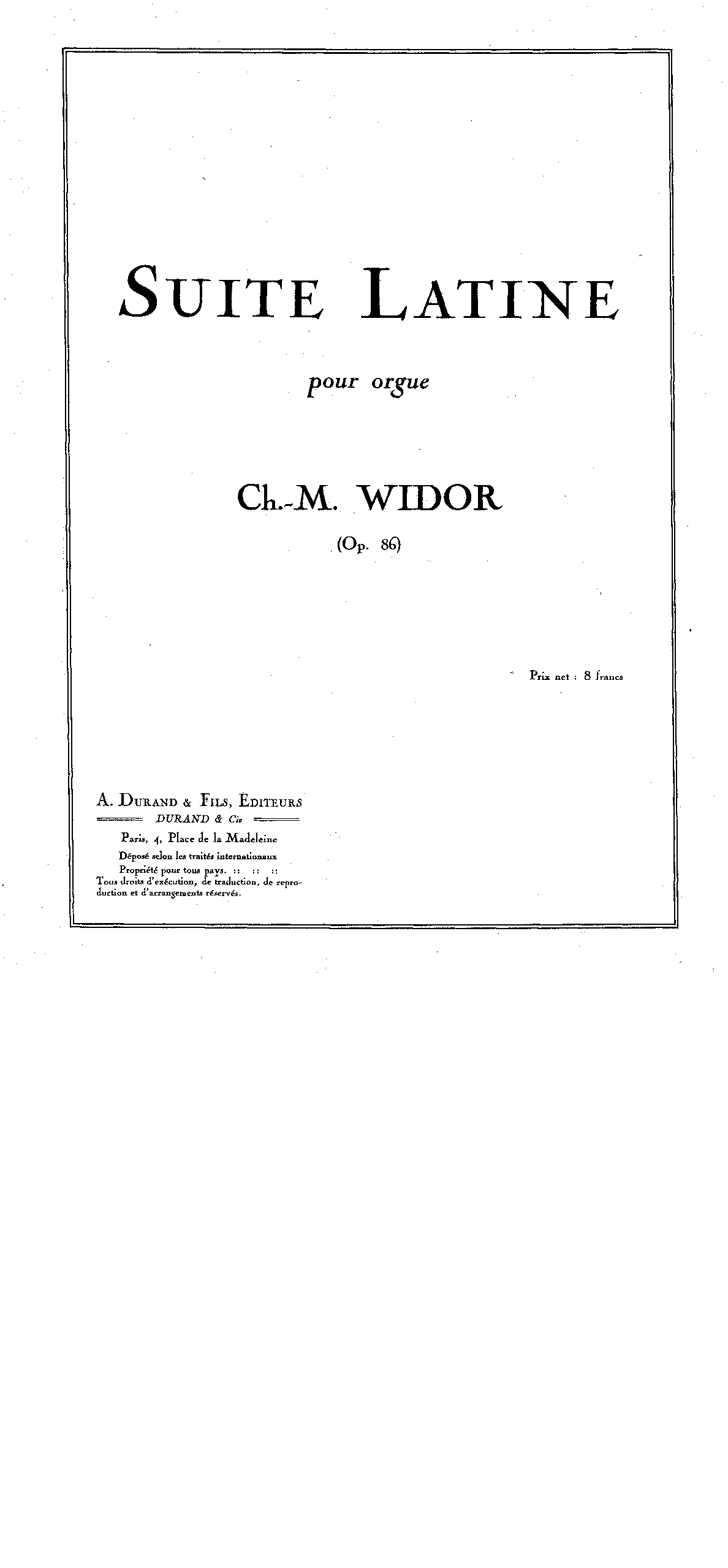 | Genre Categories | Suites; For organ; Scores featuring the organ; For 1 player |