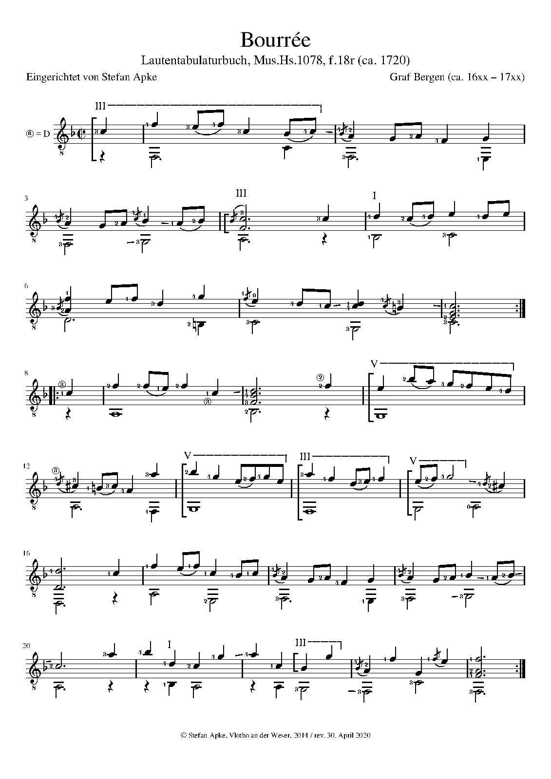 First Publication. 1720 ca. in Lautentabulaturbuch, Mus.Hs.1078 (f.18r)