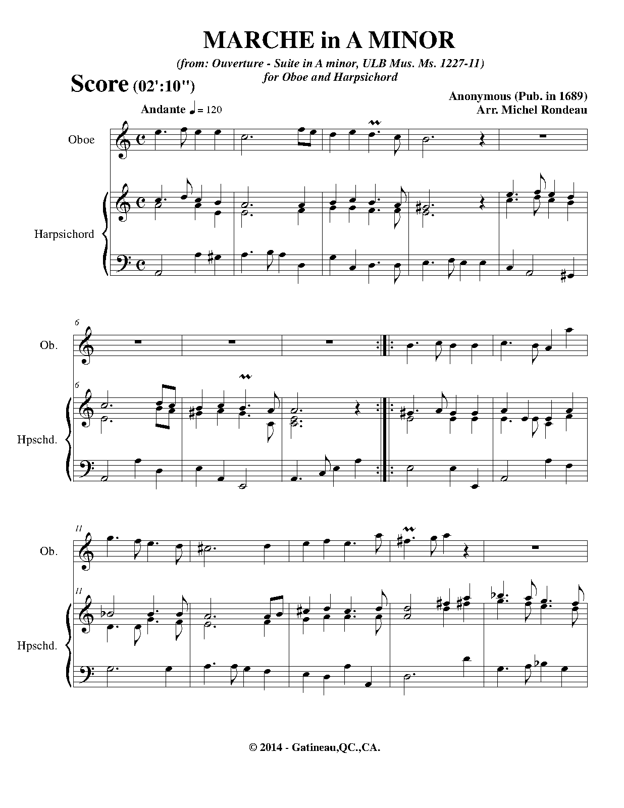 For Oboe and Harpsichord (Rondeau)