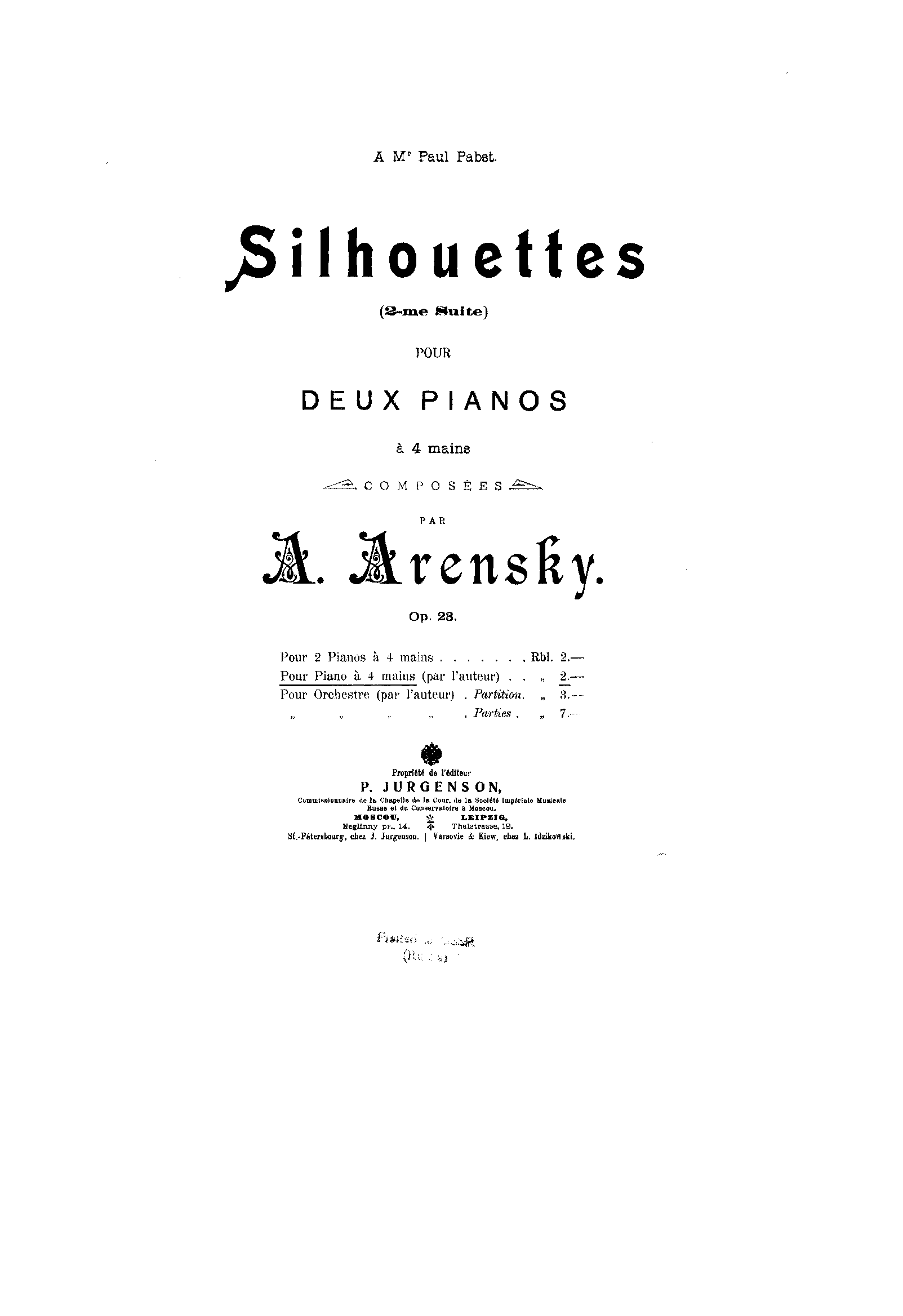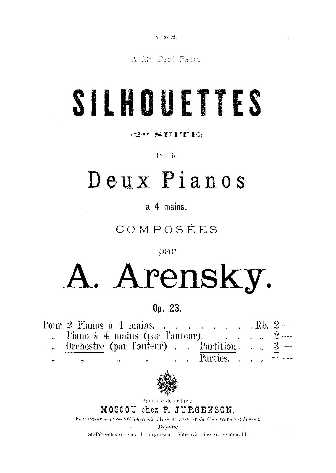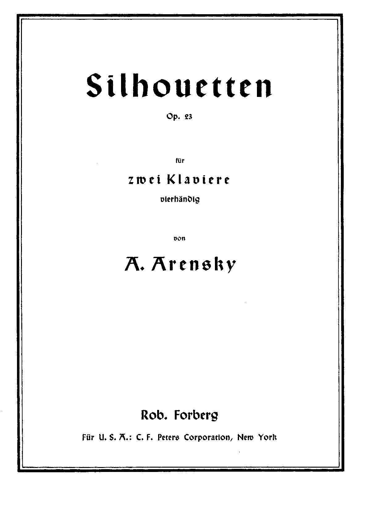 | Extra Information | Also arranged for orchestra and for piano 4-hands by Arensky. |