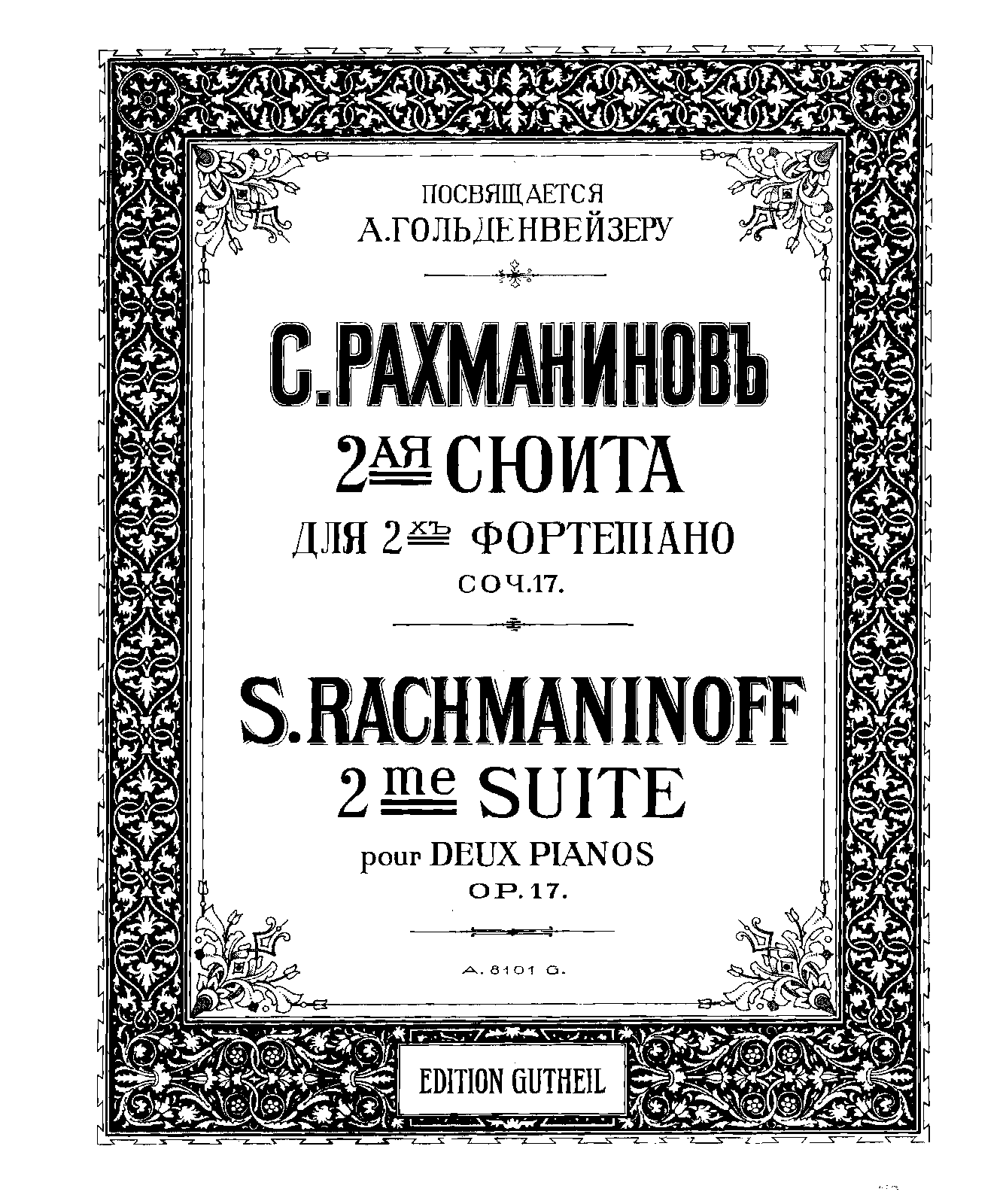 | Name Aliases | Suite n°2 op 17 pour deux pianos; Suite pour deux pianos no 2 de Rachmaninov; Suite pour deux pianos n° 2 de Rachmaninov; Suite pour deux pianos n° 2; Suite n 2; |