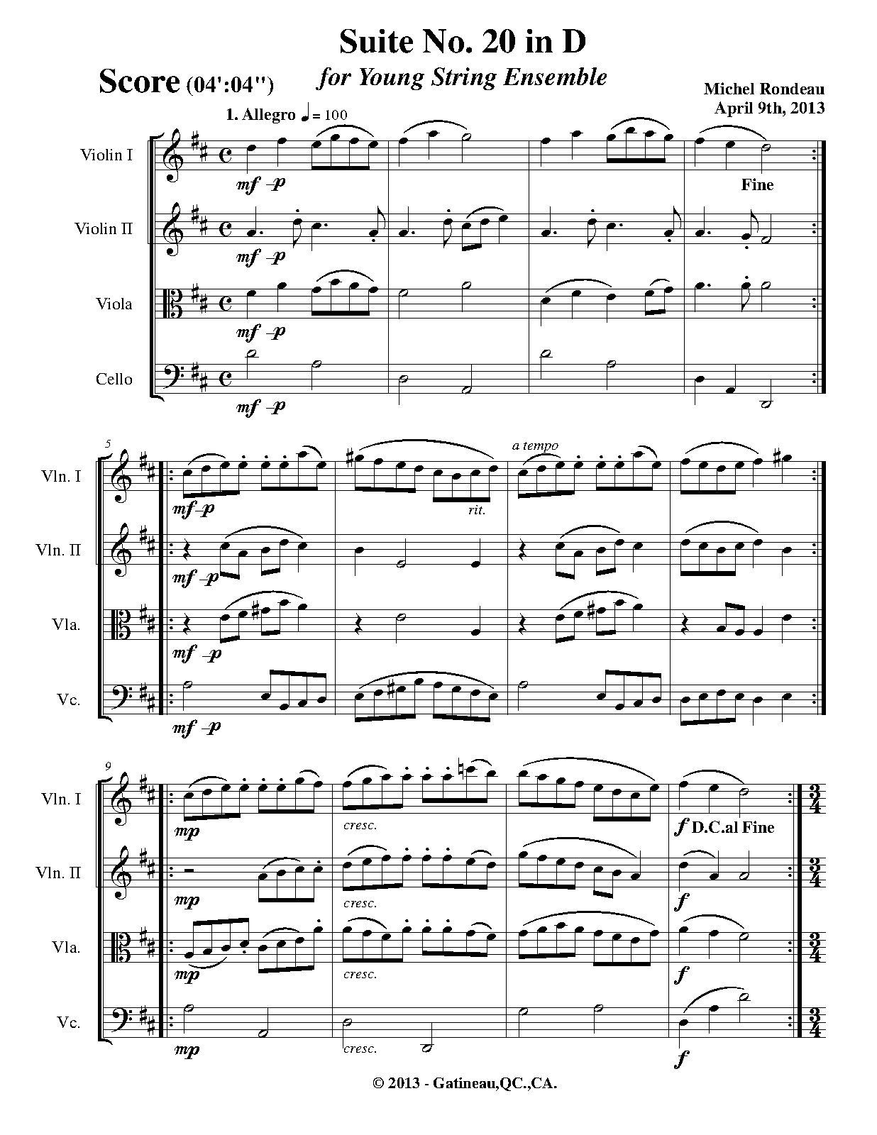 | Work Title | Suite No.20 in D major |