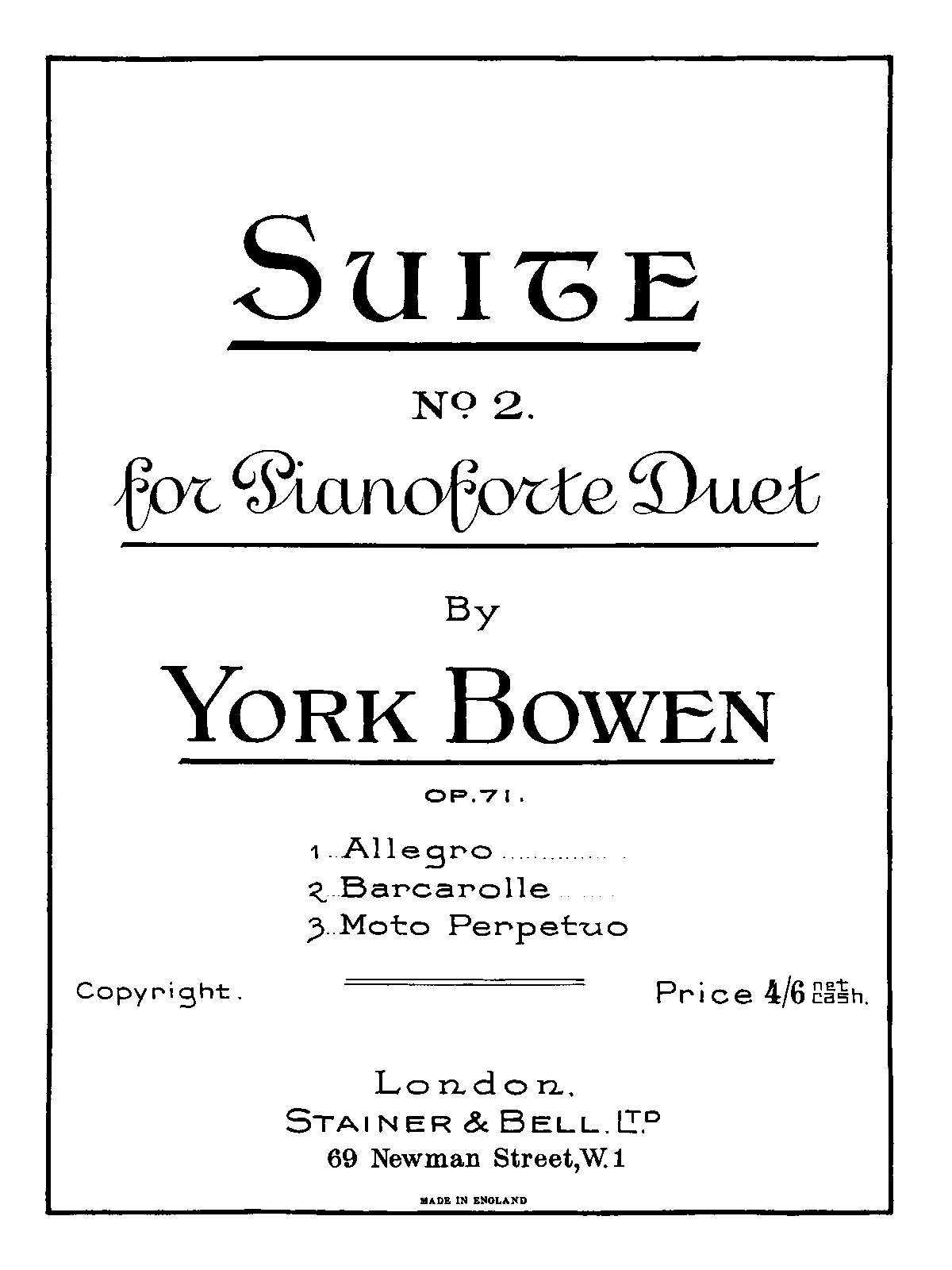 | Alternative. Title | Suite No. 2 for Pianoforte Duet ; 3 Pieces (caption title) |