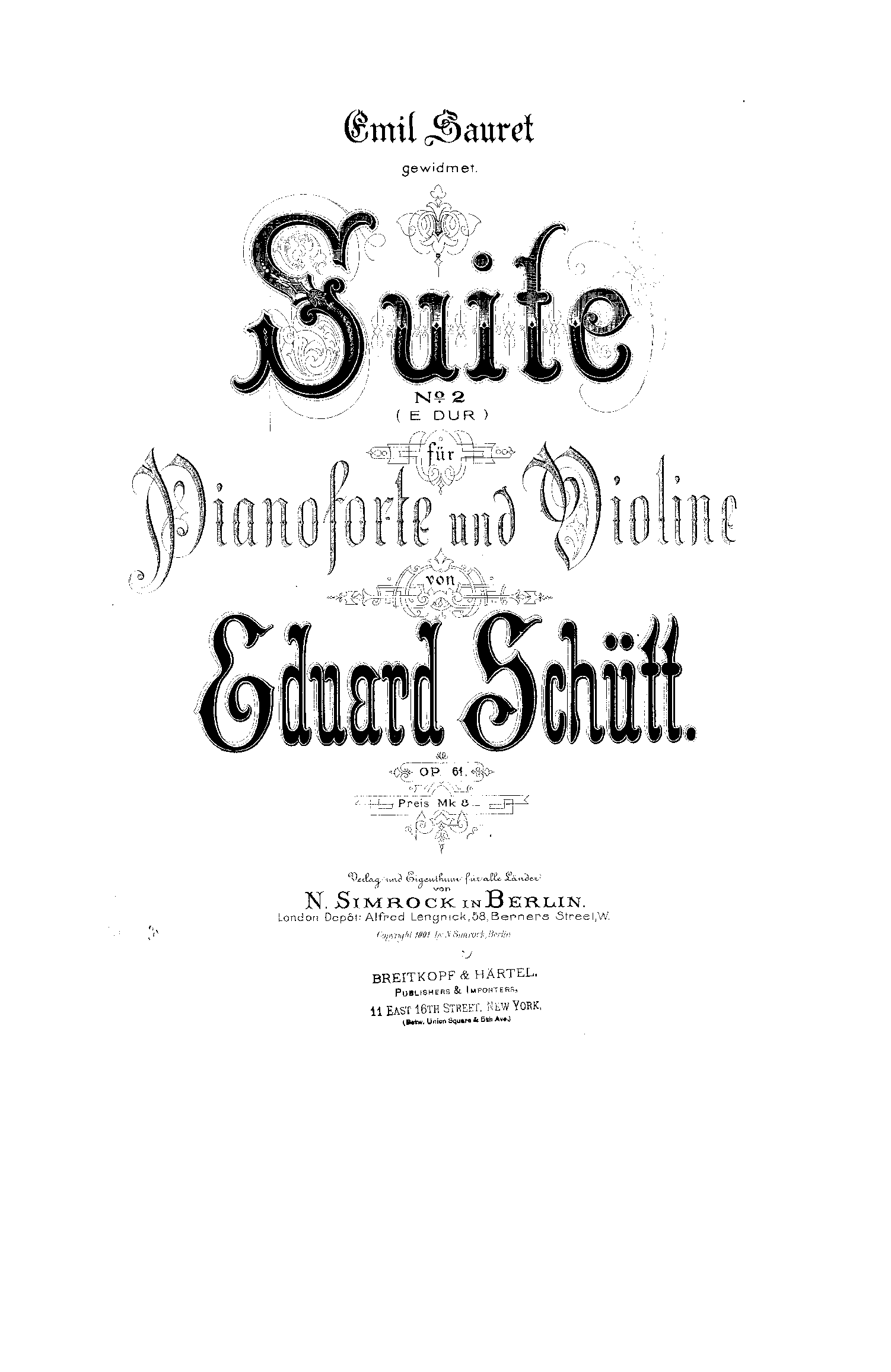 | First Publication | 1901 – Berlin: N. Simrock |