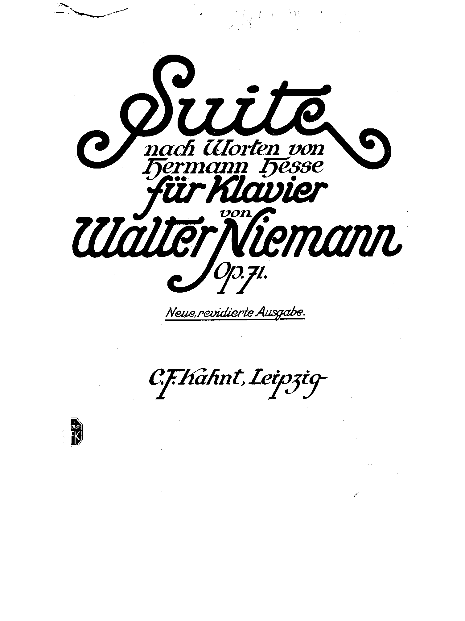 | Work Title | Suite nach Worten von Hermann Hesse. Für Klavier. Werk 71. |