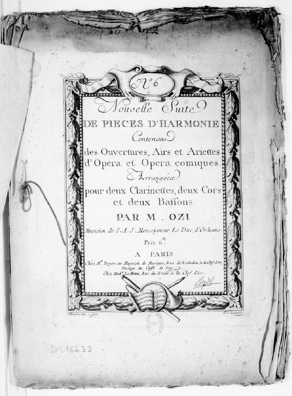 | Alternative. Title | Nouvelle suite de pièces d'harmonie Contenant des ouvertures, airs et ariettes d'opéra et opéra-comiques arrangées pour deux clarinettes, deux cors et deux bassons |
