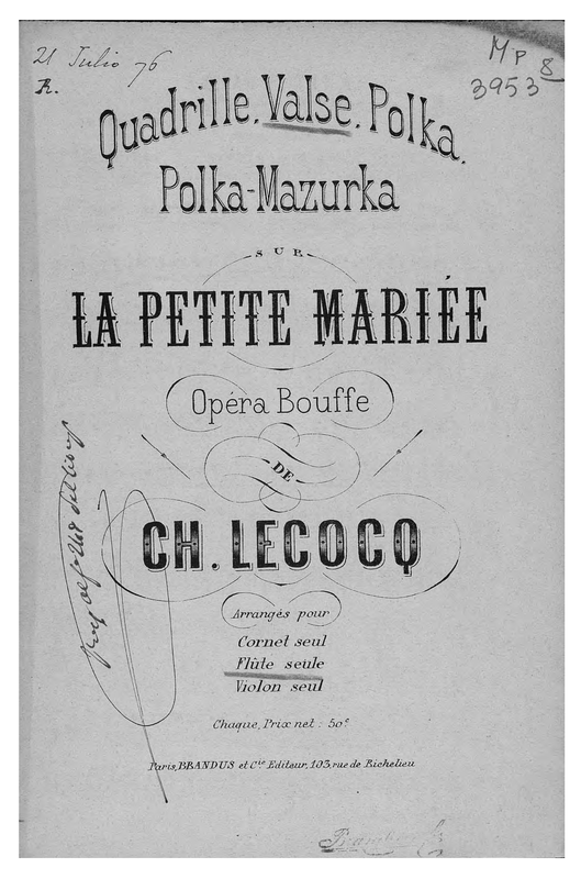 | Alternative. Title | La petite mariée. Opéra-bouffe de Ch. Lecocq. Suite de valses. |