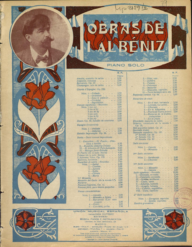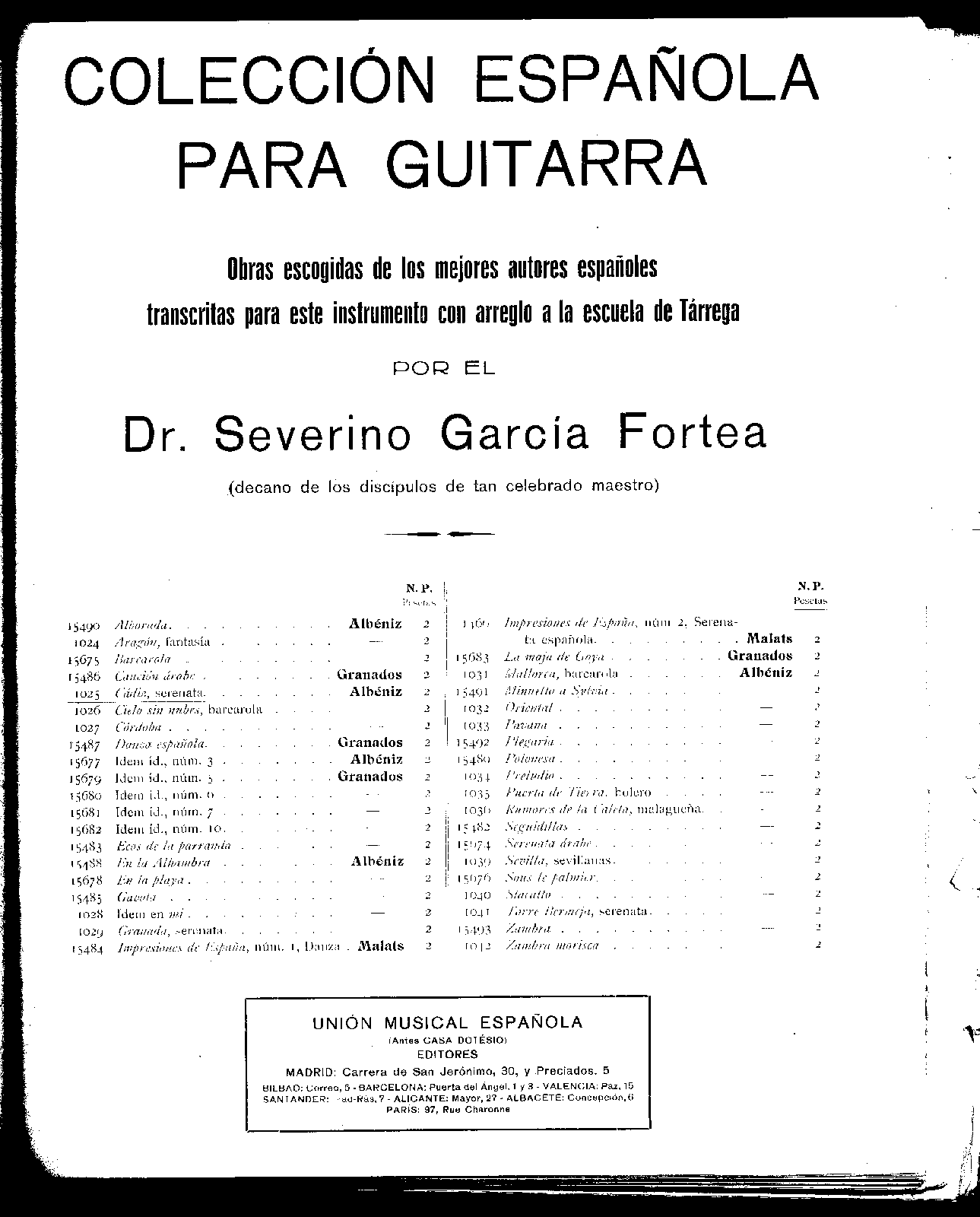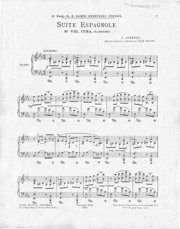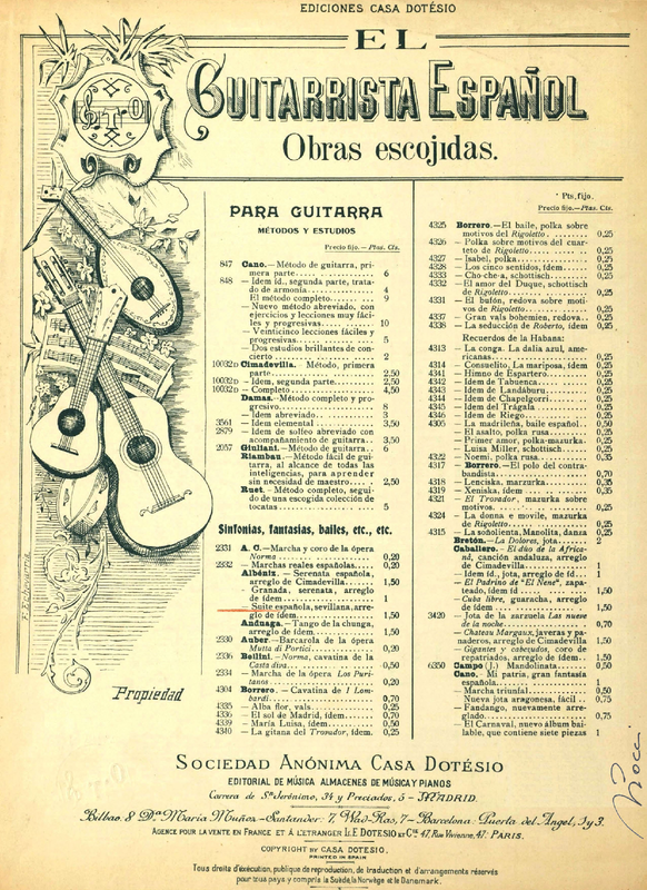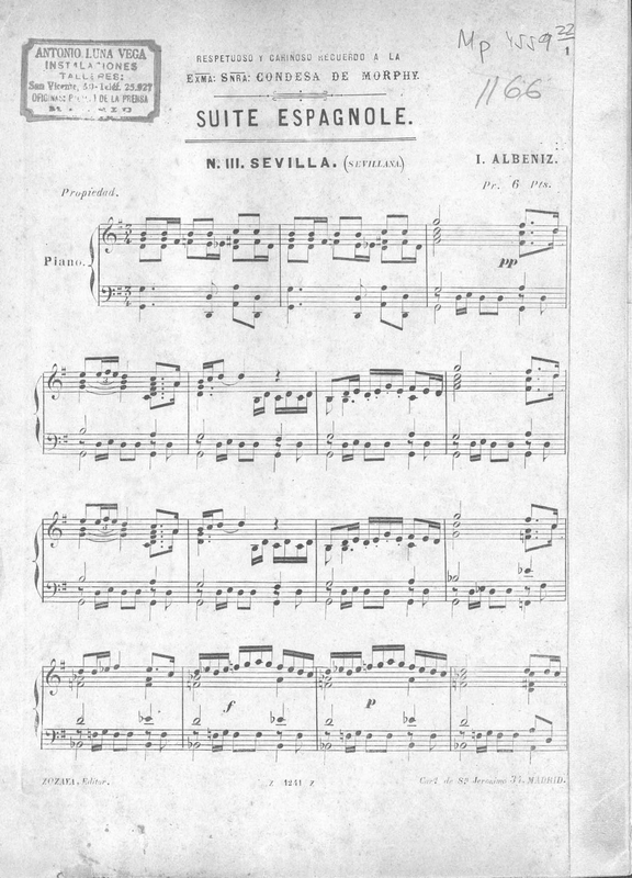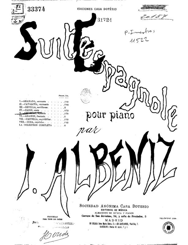 | Extra Information | *Though Zozaya announced the publication of the suite containing all 8 pieces, the actual first edition only contained 1, 2, 3 and 8 (issued separately). The others (4-7) were issued separately between 1889 and 1897 by other publishers. The entire 8-movment suite only appeared in 1901 (Dotesio). |