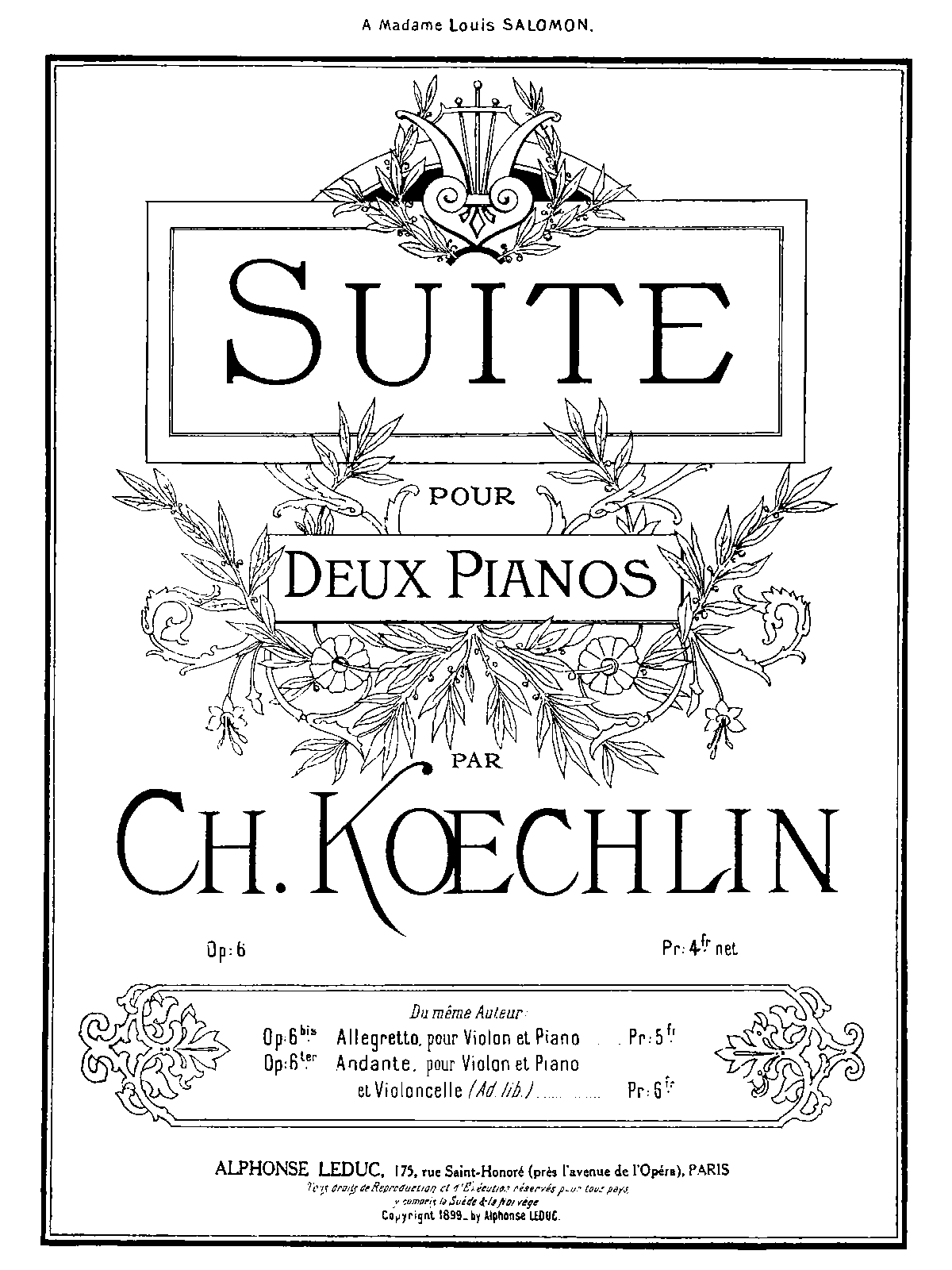 The French Wikipedia article claims that Leduc published the first edition in 1896, the same as the year of composition, but the 1899 edition is more likely the first. This edition is also the only one listed at WorldCat and in the BnF catalogue.