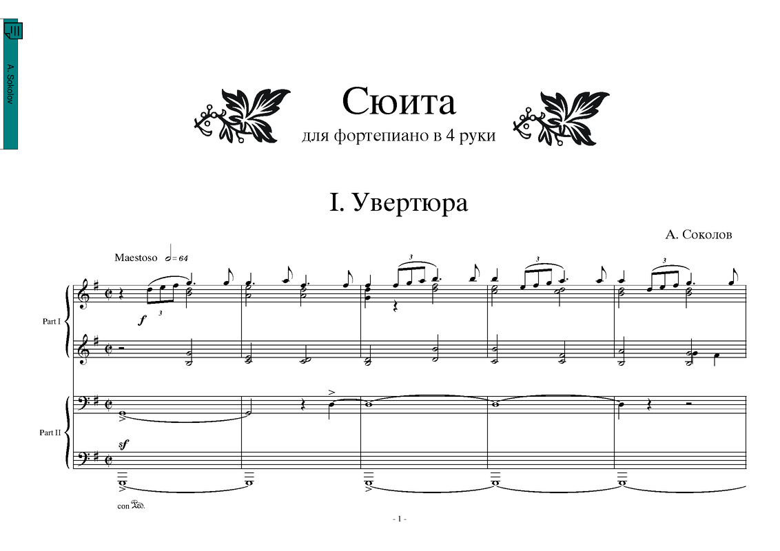 | Alternative. Title | Сюита для фортепиано в 4 руки |