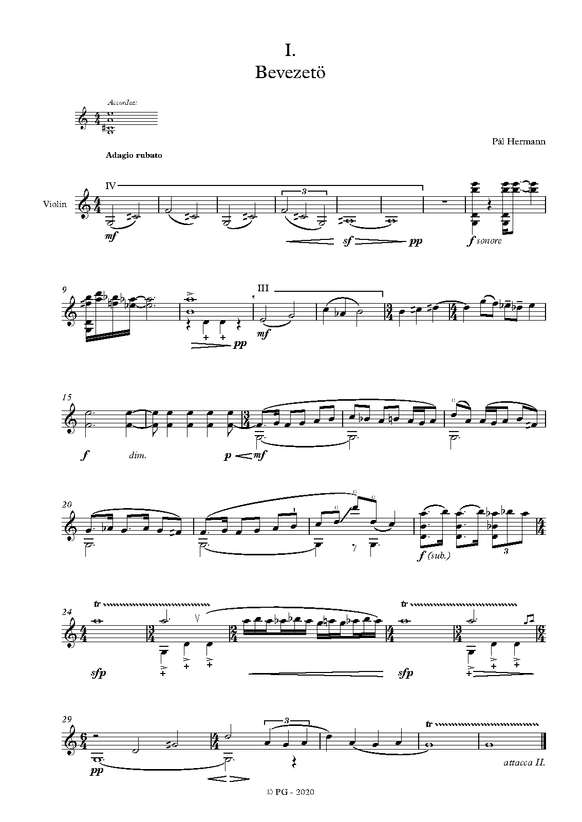 | Extra Information | The different scordaturas for each movement are crucially important; without them the piece is impossible to play. The piece is most likely a virtuosity challenge from Hermann to his friend and stage partner Székely. |