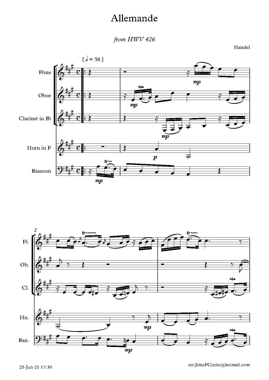 For Flute, Oboe, Clarinet, Bassoon and Horn (Clarke)