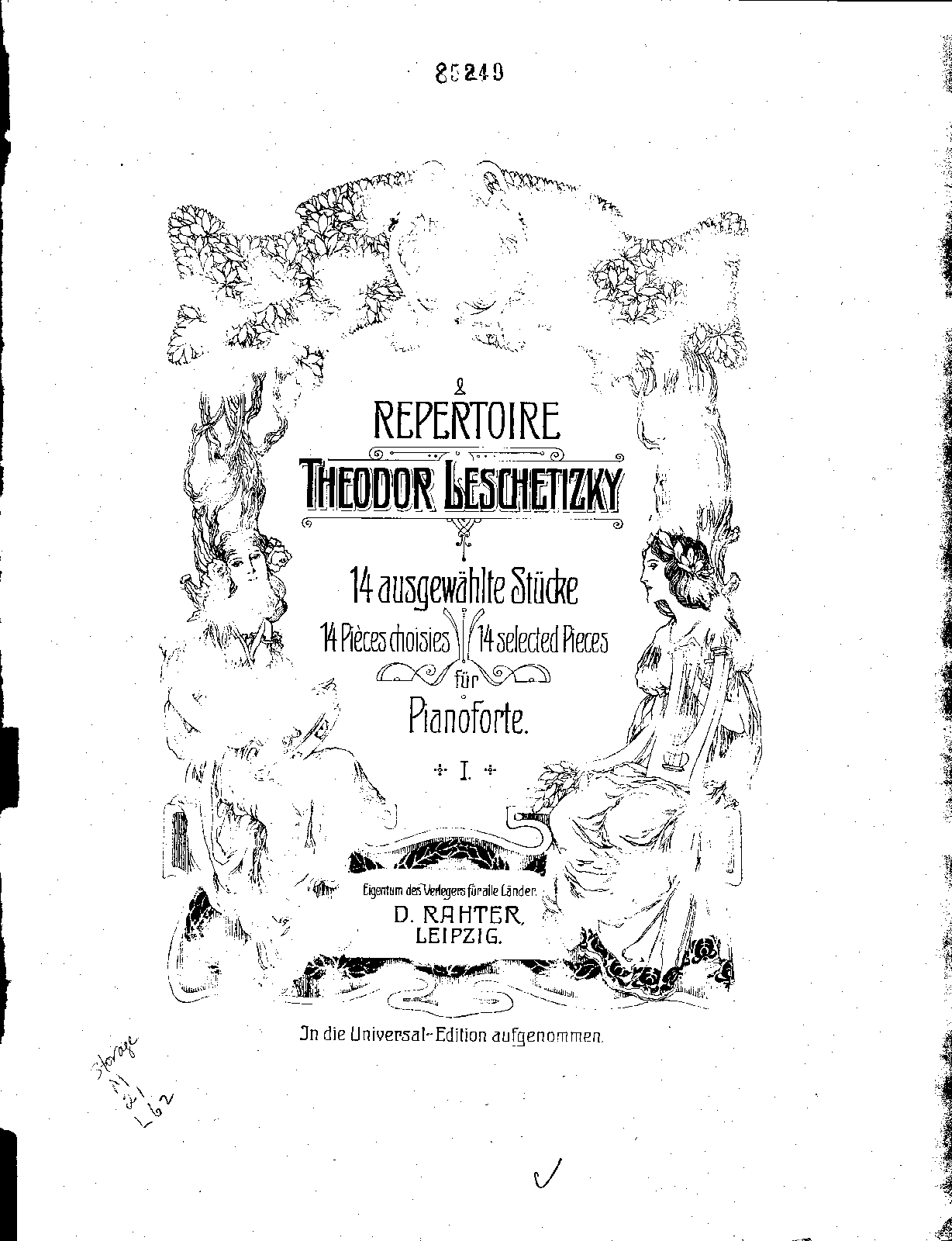Repertoire Theodor Leschetizky 14 ausgewählte Stücke für Pianoforte Leipzig: Rahter, n.d.(1882). Plate 2245