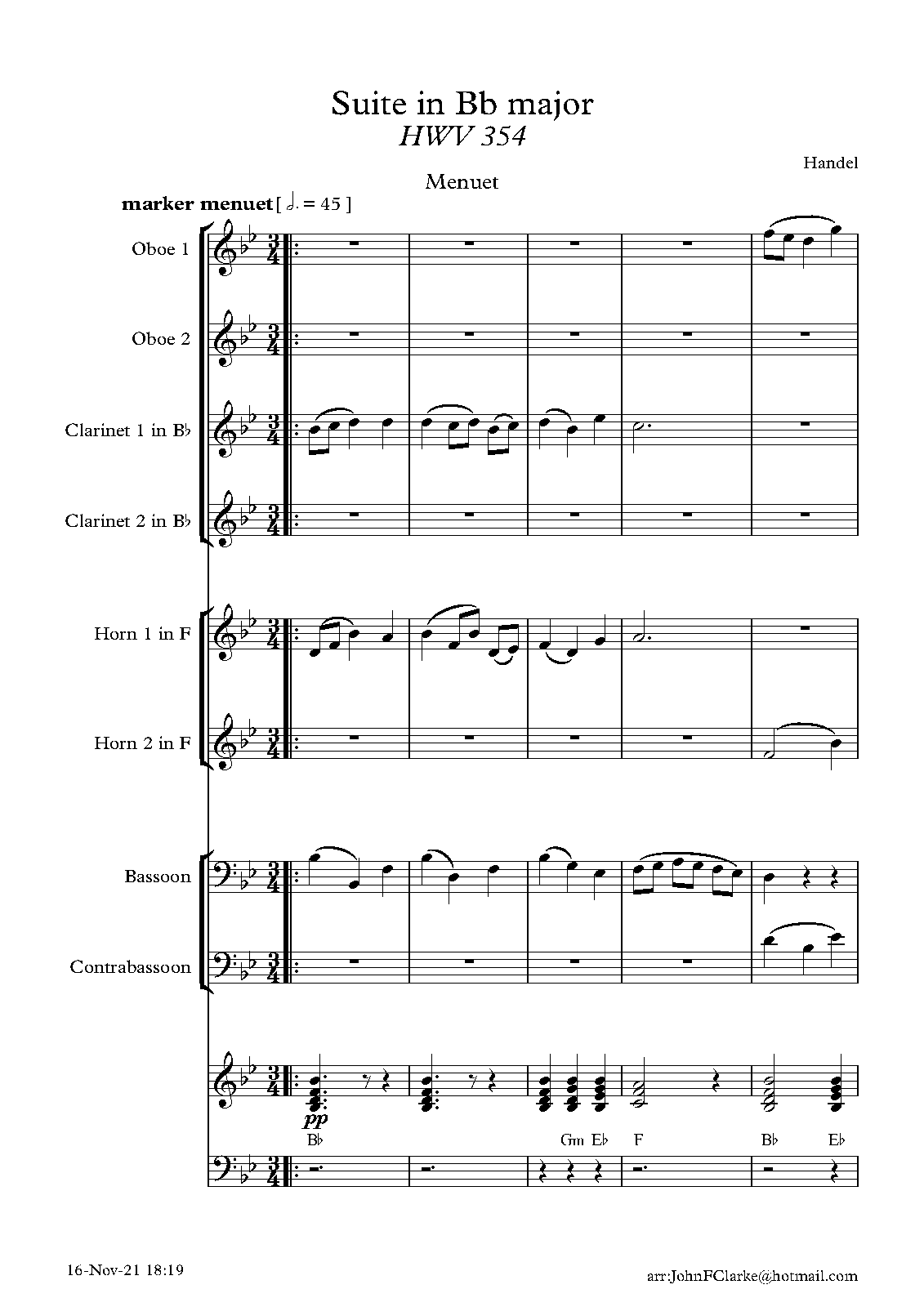 For 2 Oboes, 2 Clarinets, Bassoon and Contrabassoon and 2 Horns (F) (Clarke)