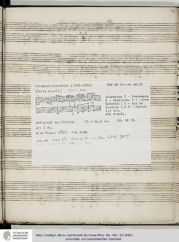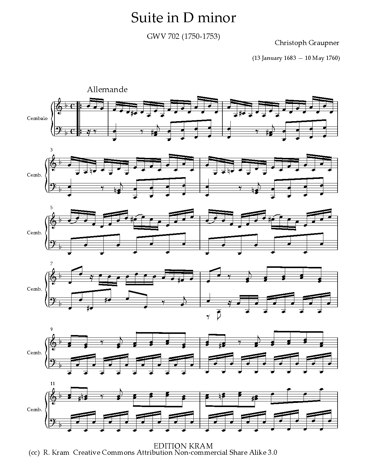 | Movements/SectionsMov'ts/Sec's | 6 movements: Allemande - Courrante - Sarabande - No indication - Air en Gavotte 1,2 - Menuet 1,2 |