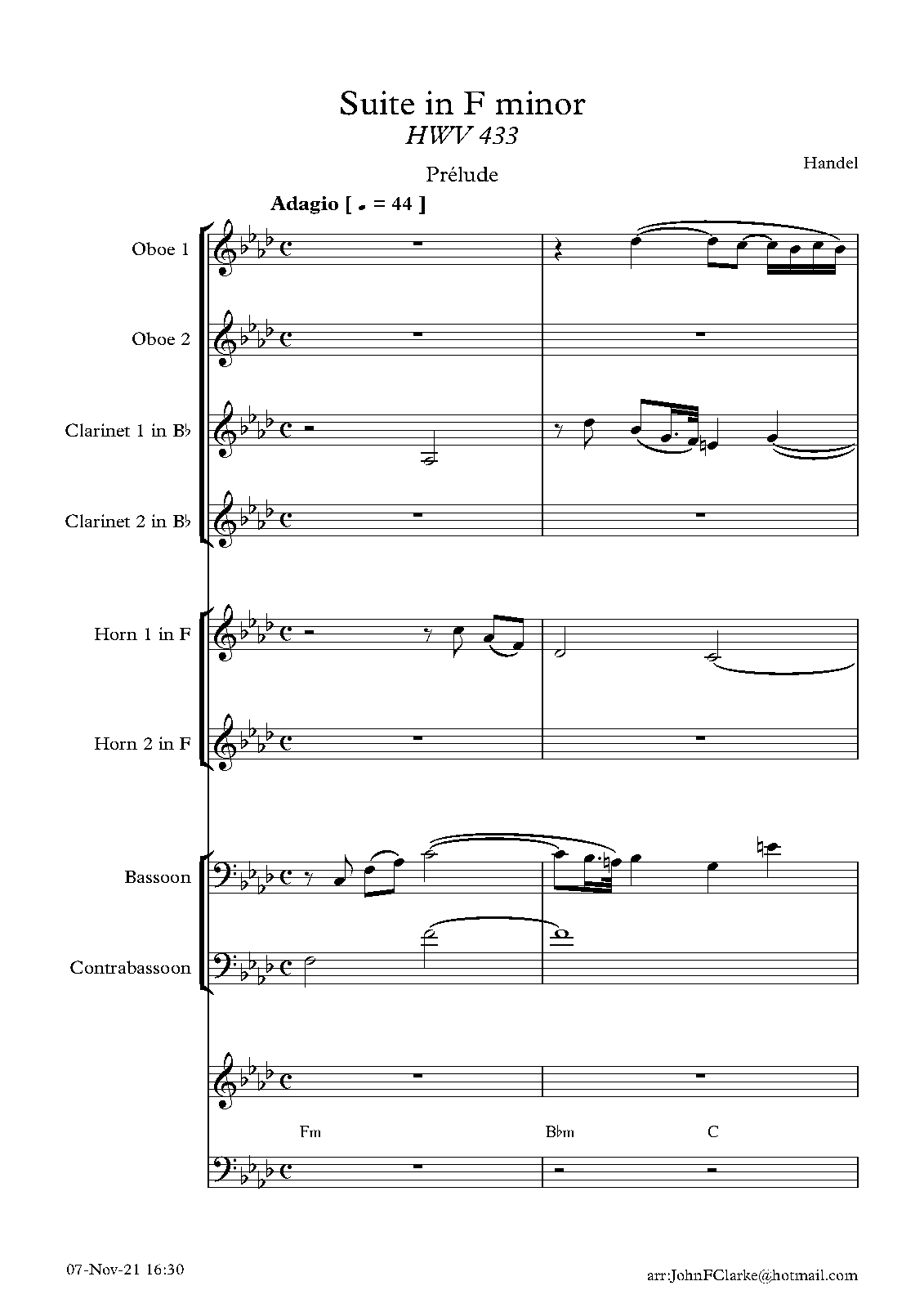 For 2 Oboes, 2 Clarinets, Bassoon, Contrabassoon and 2 Horns (Clarke)