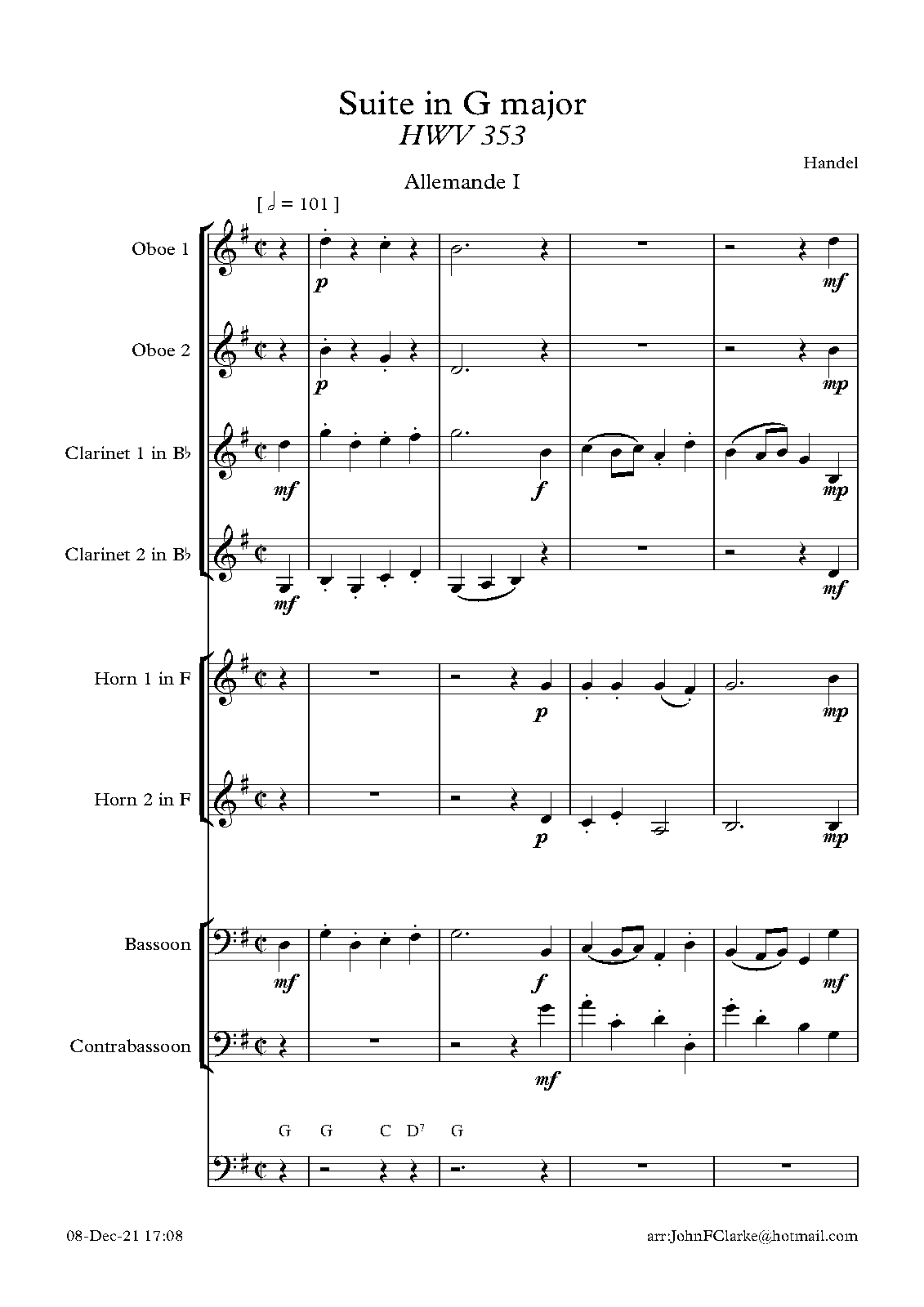 For 2 Oboes, 2 Clarinets, Bassoon, Contrabassoon and 2 Horns (Clarke)
