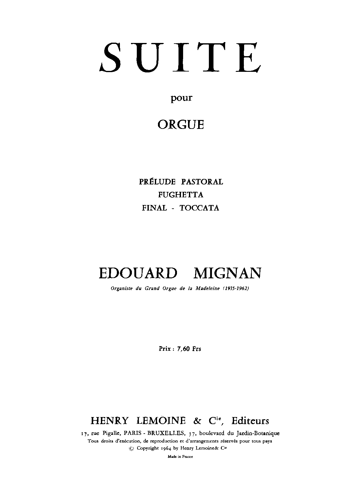 | Genre Categories | Suites; For organ; Scores featuring the organ; For 1 player |