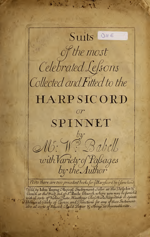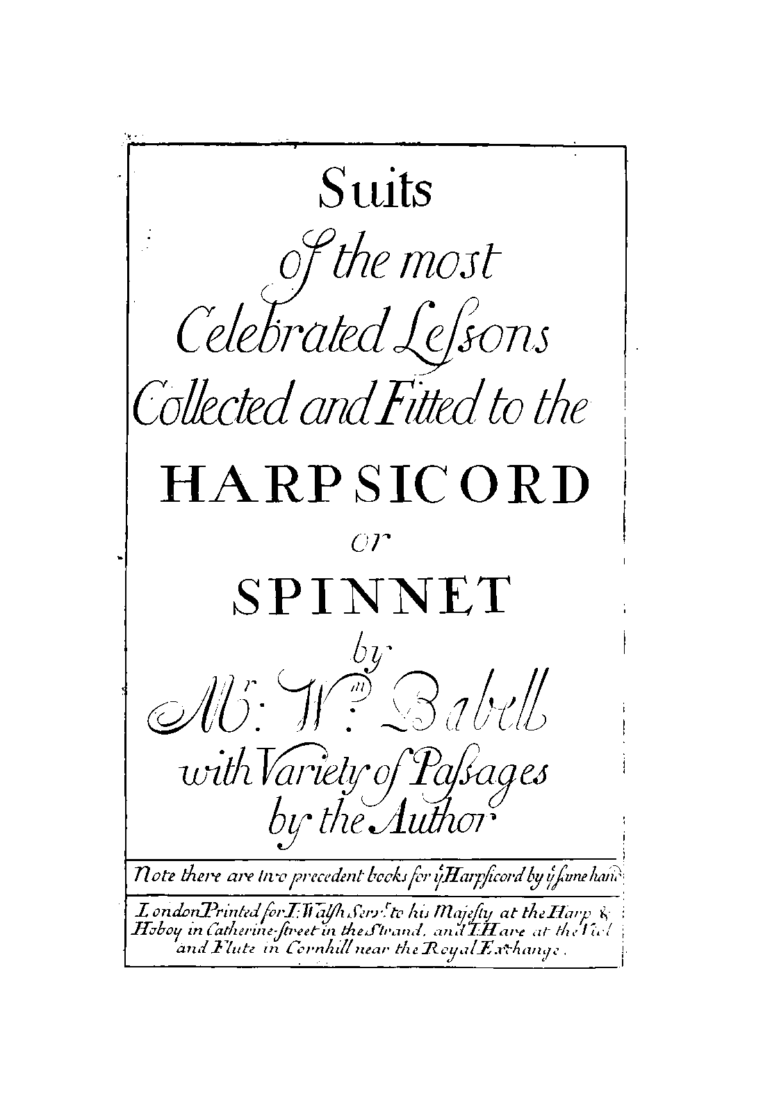 | Alternative. Title | Suits of the most Celebrated Lessons collected and fitted to the Harpsicord or Spinnet |