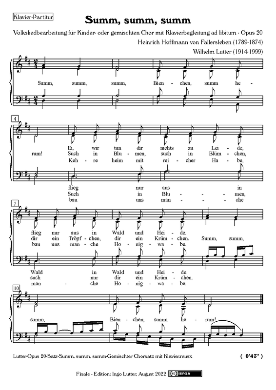 | Alternative. Title | Satz für Kinder- oder gemischten Chor mit Klavier (ad libitum) |
