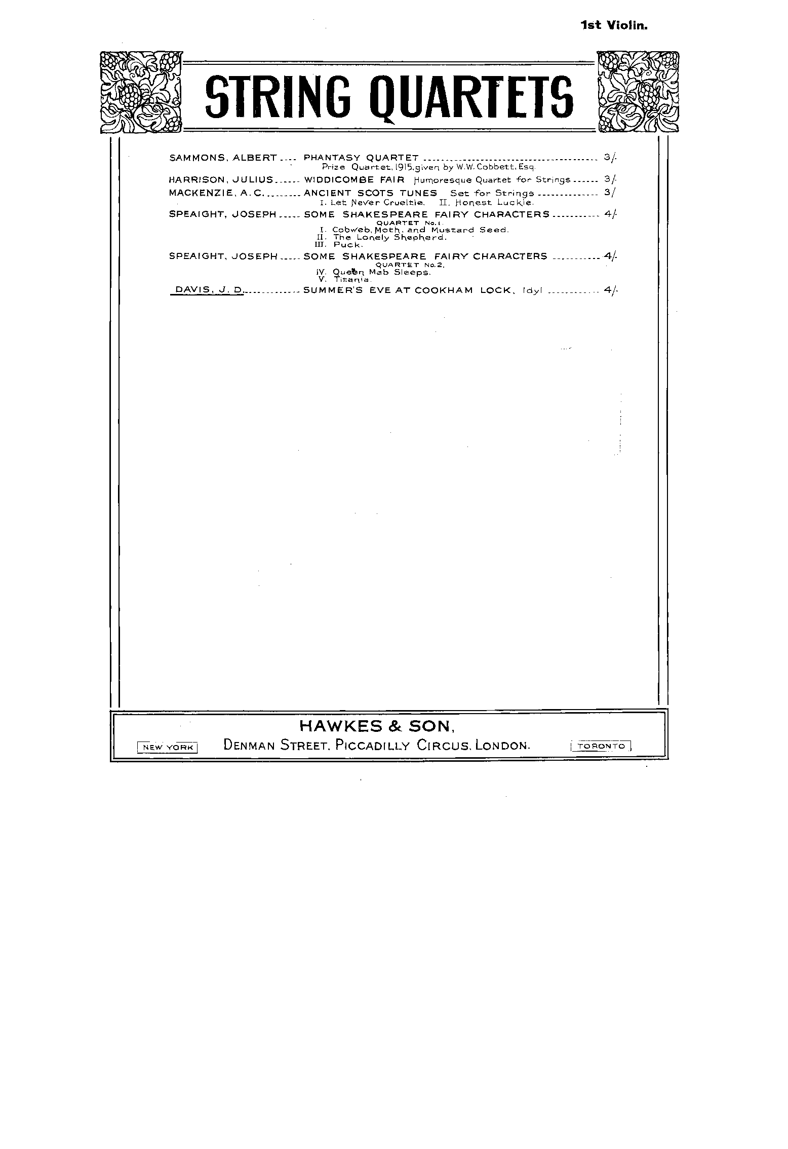 Publisher. Info. London: Hawkes & Son, 1916. Plate H. & S. 5508.
