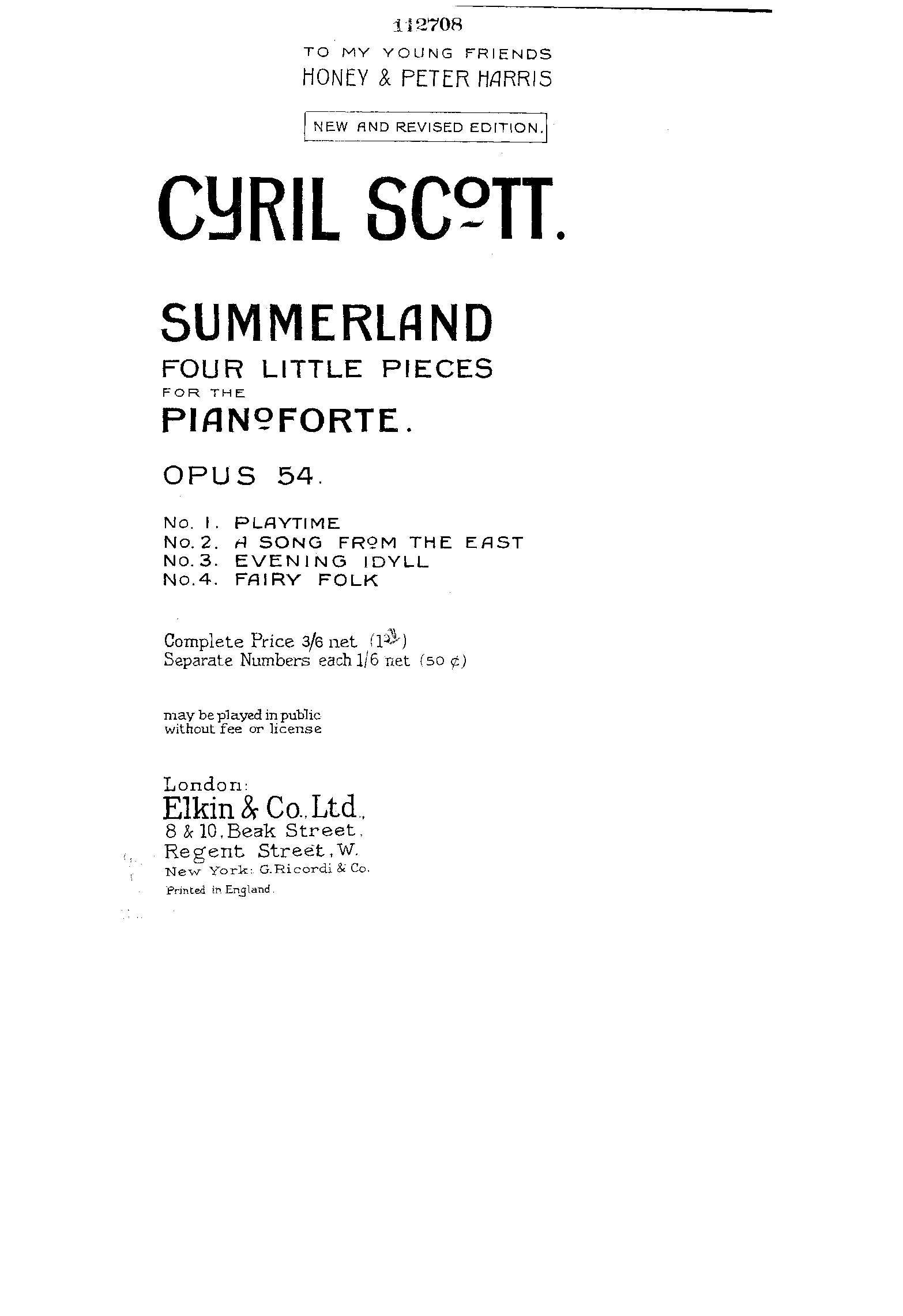 Publisher. Info. London: Elkin & Co., 1907. Plate E. & Co. 393.