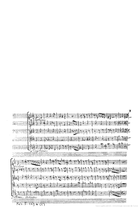 | Instrumentation | solists : soprano, haute-contre, basse-taille, choeurs mixte (5 voix français) (Sol 2, Ut 3, Fa 3), Choeur : Sol 2 (2), Ut 3, Ut 4, Fa 3, Fa 4. - Orchestre : Sol 1, Ut 1, Ut 2, Ut 3, Fa 4. - Mention d'instruments sous la musique : "violons", "fluste allemande". |