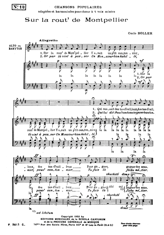 Misc. Notes Chanson populaire pour chœur à 4 voix mixtes N° 12