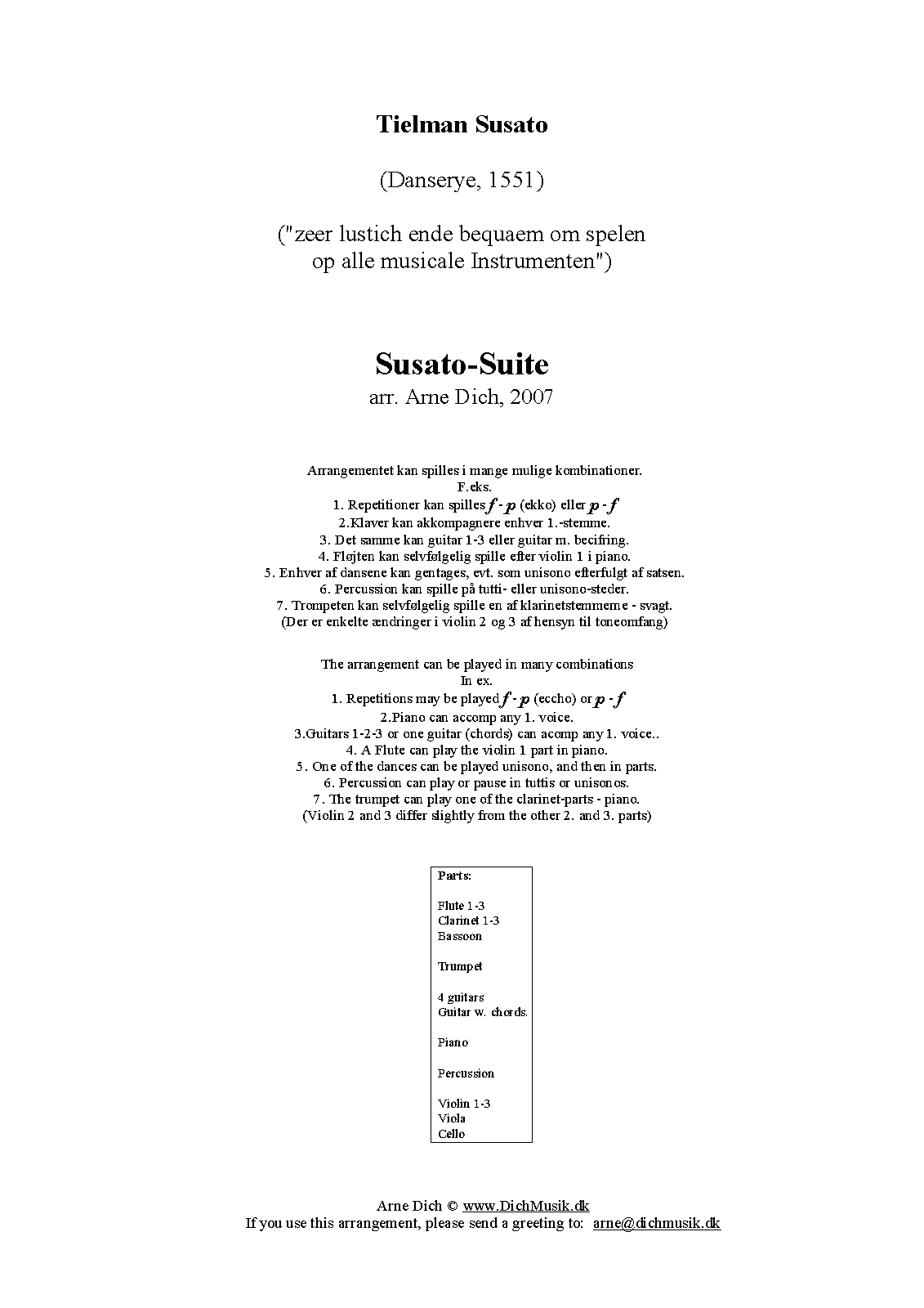 | Work Title | Susato Suite |