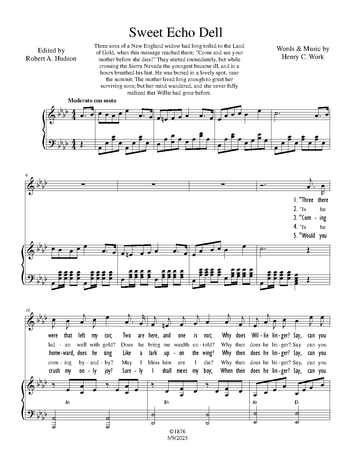 | Genre Categories | Songs; For voice, mixed chorus, piano; For voices and chorus with keyboard; |
